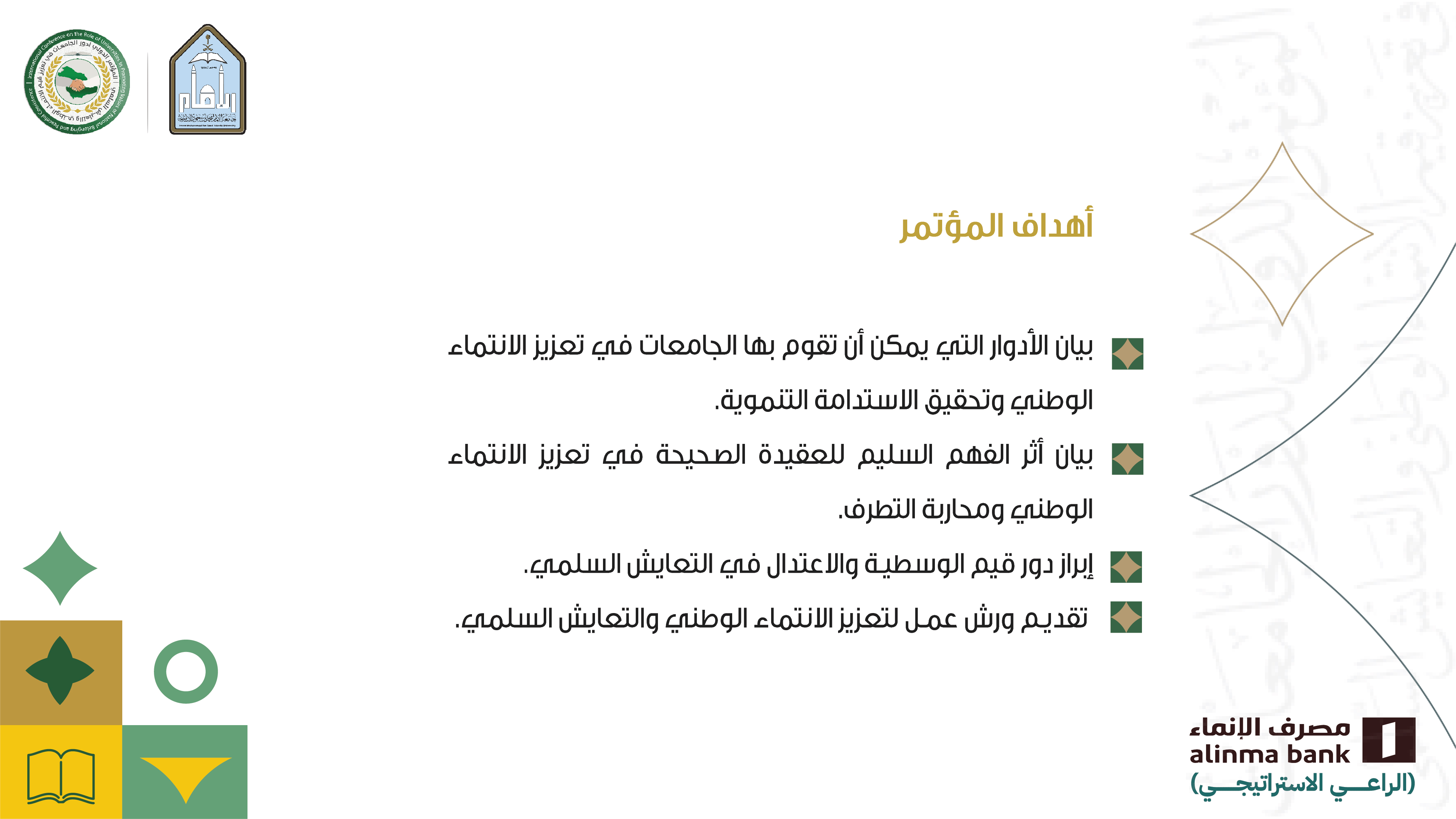 المؤتمر الدولي لدور الجامعات في تعزيز قيم الانتماء الوطني والتعايش السلمي