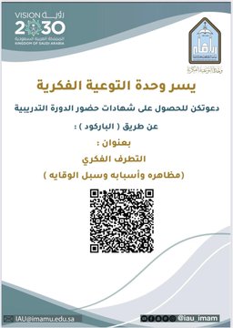 وعنوانها التطرف الفكري (مظاهره وأسبابه وسيل الوقاية)، عن طريق (الباركود) .