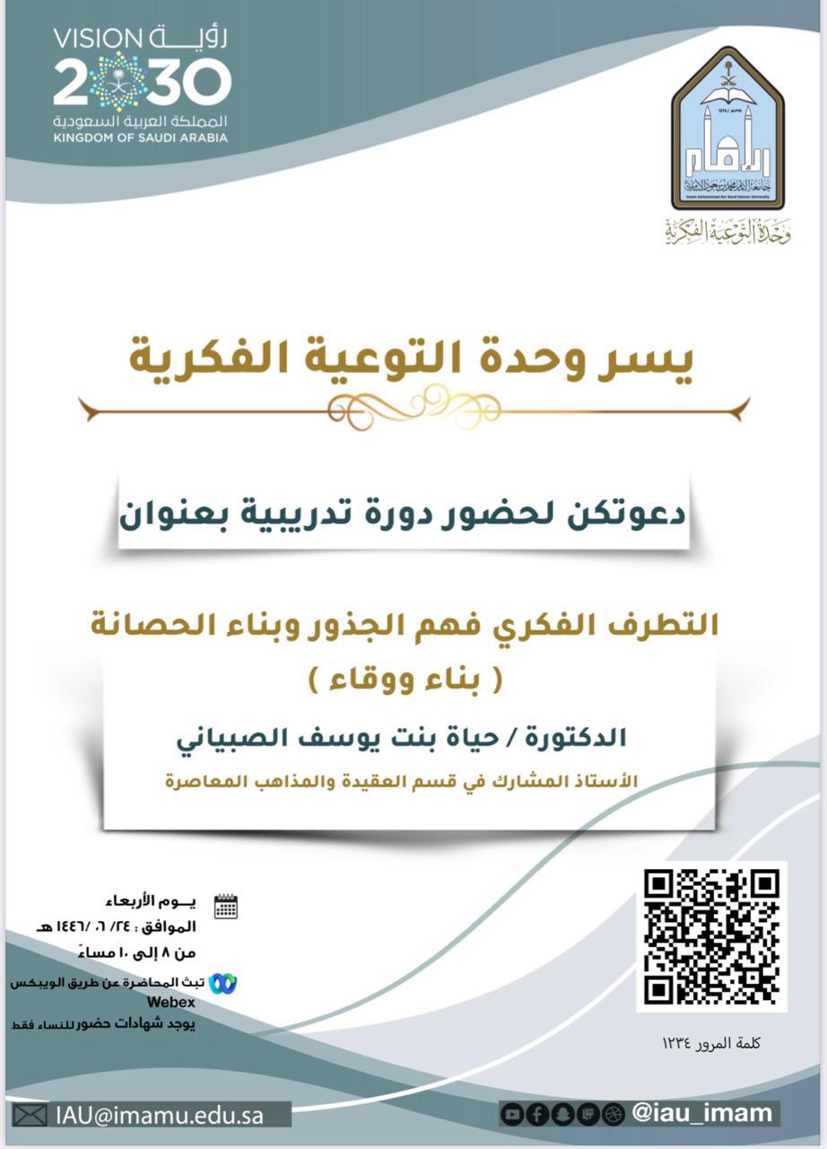 يَسر التوعية الفكرية دعوتكن لحضور دورة تدريبية بعنوان: