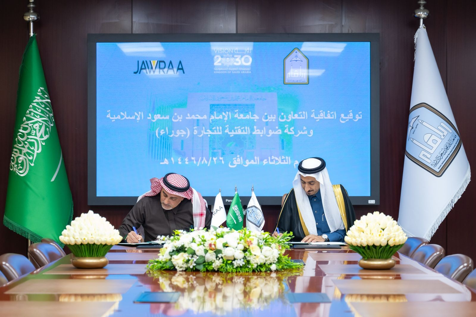 ​​​​​​     وقعت جامعة الإمام محمد بن سعود الإسلامية اليوم الثلاثاء 25/2/2025م مذكرة تعاون مع شركة ضوابط التقنية للتجارة (جوراء)؛ بهدف تقديم الخبرات التقنية والتدريب والتطوير والاستشارات التعليمية، وخدمات التحول الرقمي في أنظمة التعليم.