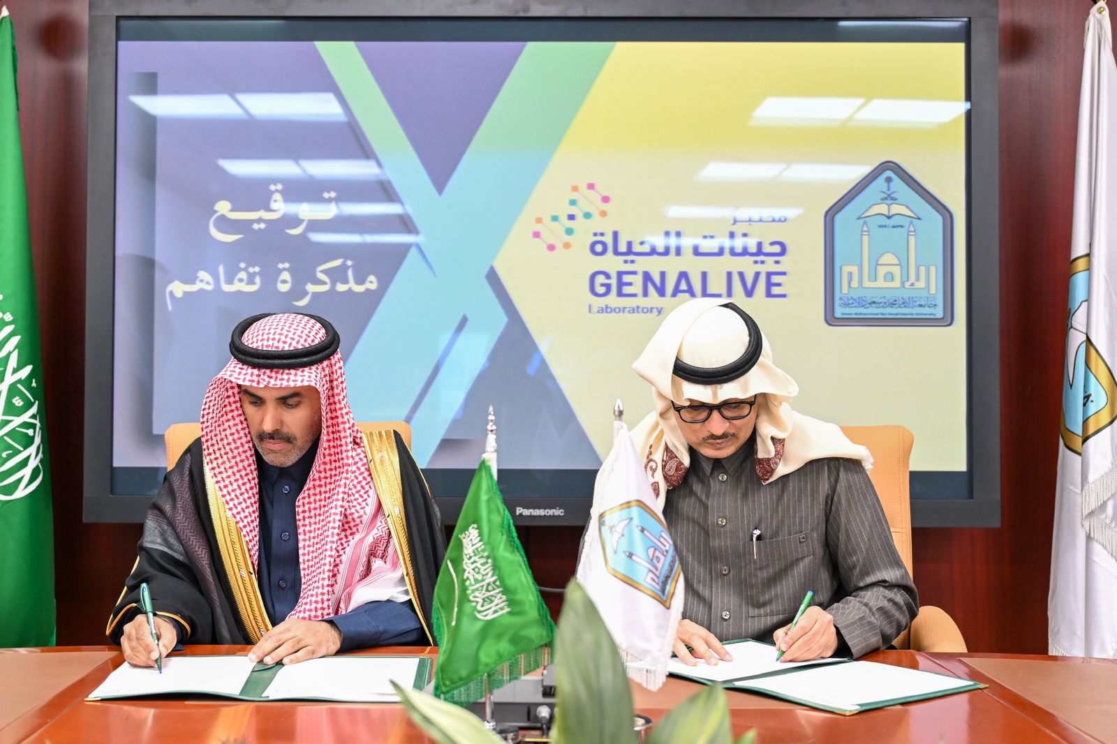 وقّعت جامعة الإمام محمد بن سعود الإسلامية ممثّلةً بوكالة الجامعة للدراسات العليا والبحث العلمي مذكرة تفاهم يوم أمس الثلاثاء 28/ 1/ 2025 مع شركة جينات الحياة الطبية؛ تعزيزًا للتعاون بين الطرفين في مجالات البحث العلمي والتدريب والتطوير، بما يسهم في تحقيق الأهداف الإستراتيجية لكل منهما.