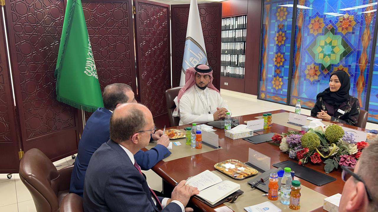 عقدت الإدارة العامة للتعاون والتواصل الدولي يوم الأربعاء 2024/10/30م اجتماعا لمناقشة تمهيد سبل التعاون المشترك بين الجهات ذات العلاقة في الجامعة وكلية دبلن للأعمال وشركة كابلن بروفيشنال الشرق الأوسط، حيث تطرق الأعضاء لمناقشة تفعيل برامج التبادل الطلابي بين الجهتين و الشراكات البحثية المشتركة في مجالات الطب والأعمال وتعلم اللغة الإنجليزية و تبادل أعضاء هيئة التدريس بين الجامعتين وكذلك تصميم وتطوير برامج دراسات مشتركة مع كلية دبلن للأعمال، كما نوقش أيضا مجالات التعاون في برامج المسؤولية المجتمعية مع شركة كابلن بروفيشنال الشرق الأوسط