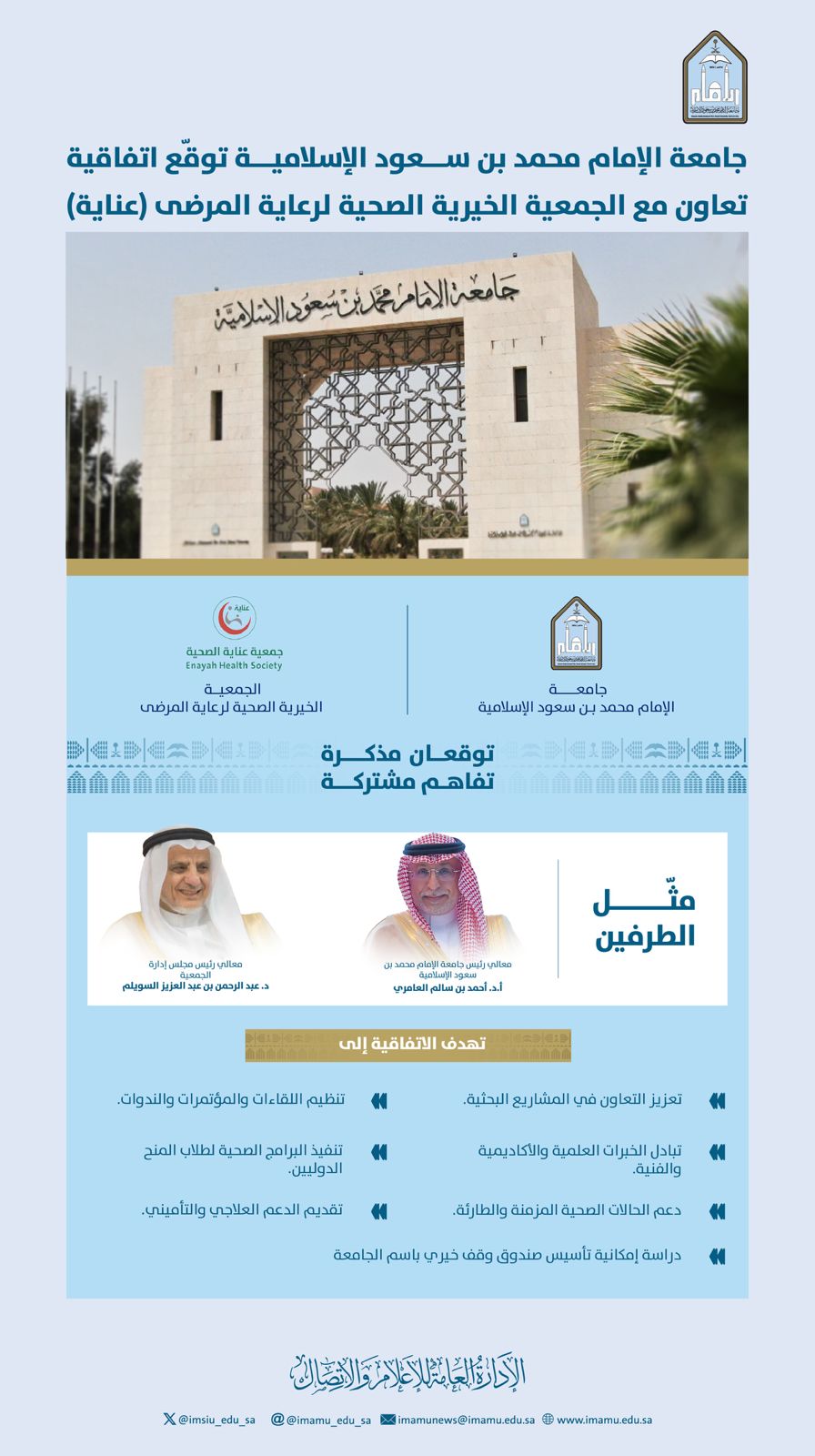 جامعة الإمام محمد بن سعود الإسلامية توقّع مذكرة تعاون مع (عناية)