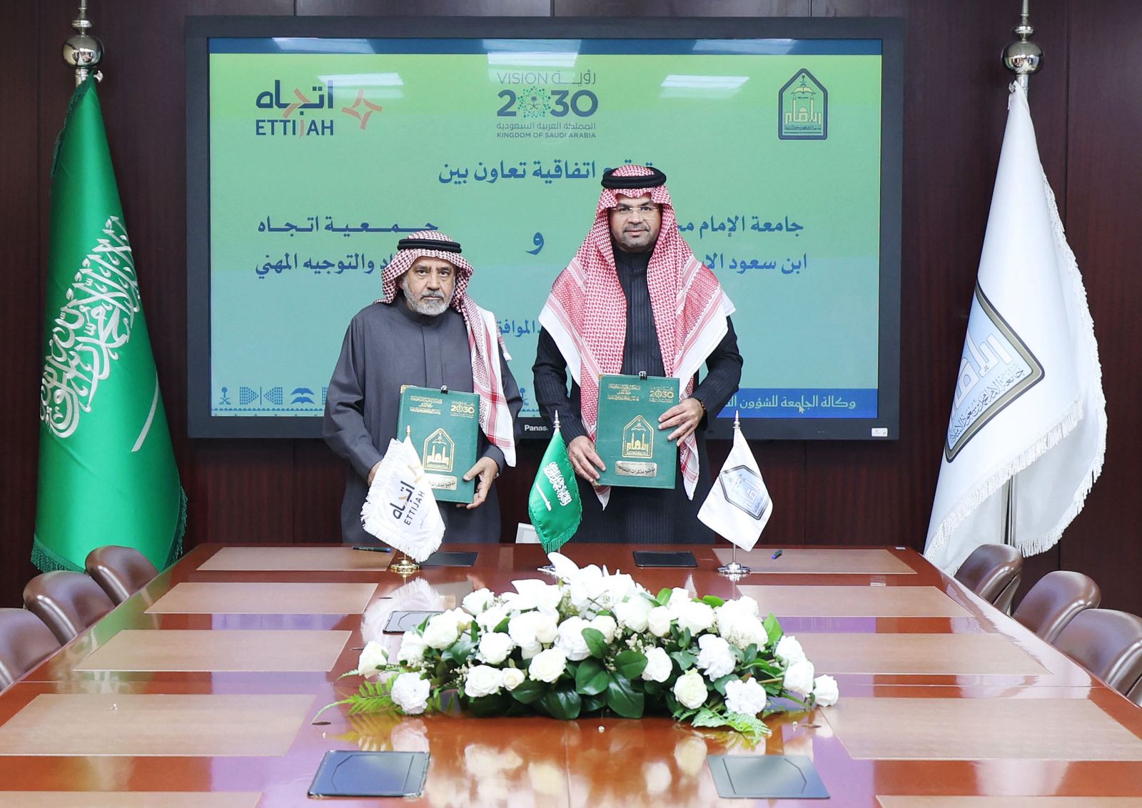 تعزيزًا للتعاون المشترك في مجالات التدريب التعاوني. جامعة الإمام محمد بن سعود الإسلامية توقّع اتفاقية تعاون مع جمعية اتجاه للإرشاد والتوجيه المهني