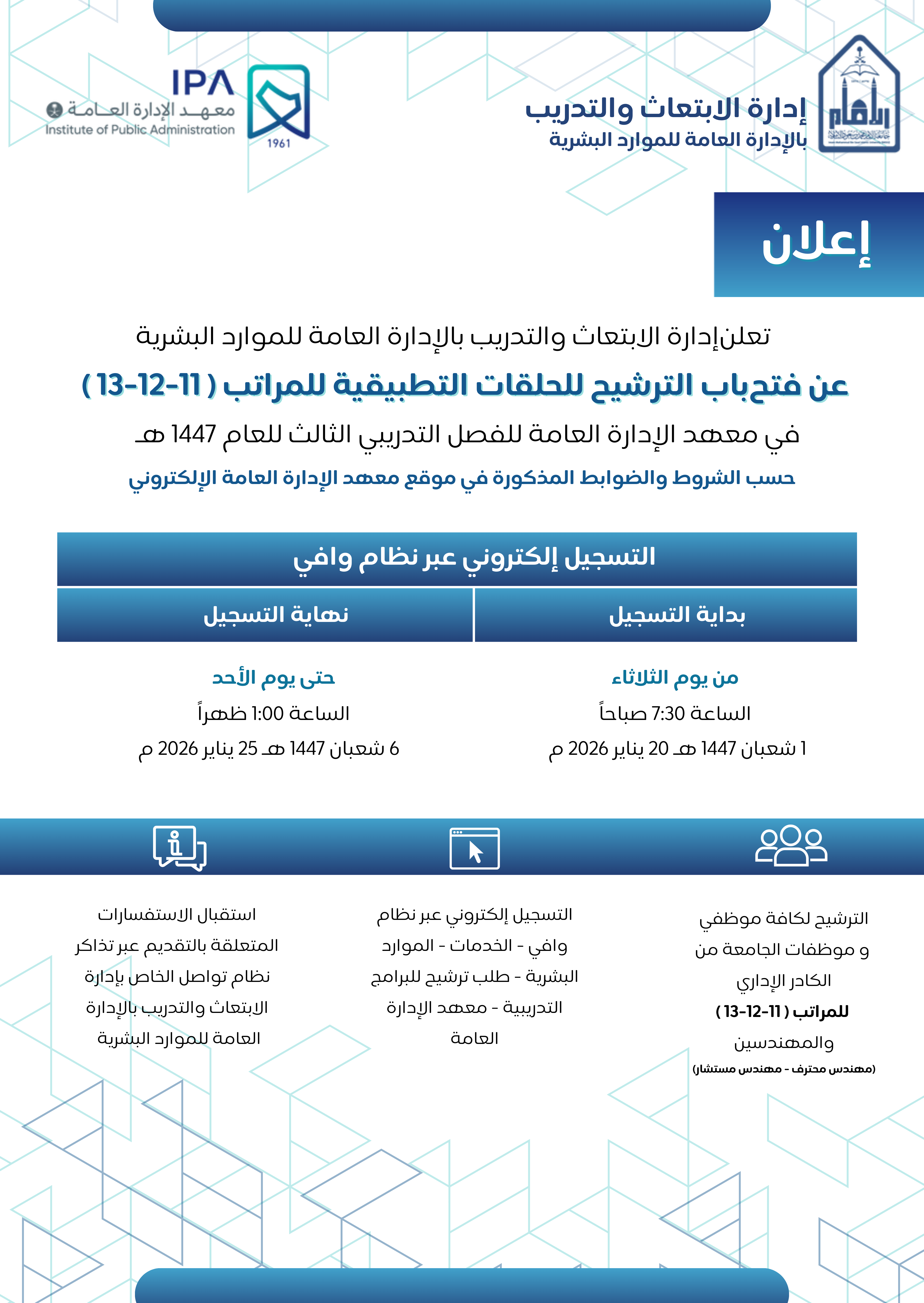 فتح باب الترشيح للحلقات التطبيقية للمراتب العليا