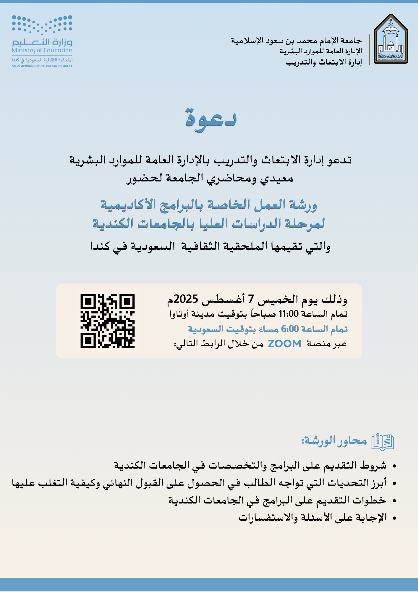 ورشة العمل الخاصة بالبرامج الأكاديمية لمرحلة الدراسات العليا بالجامعات الكندية