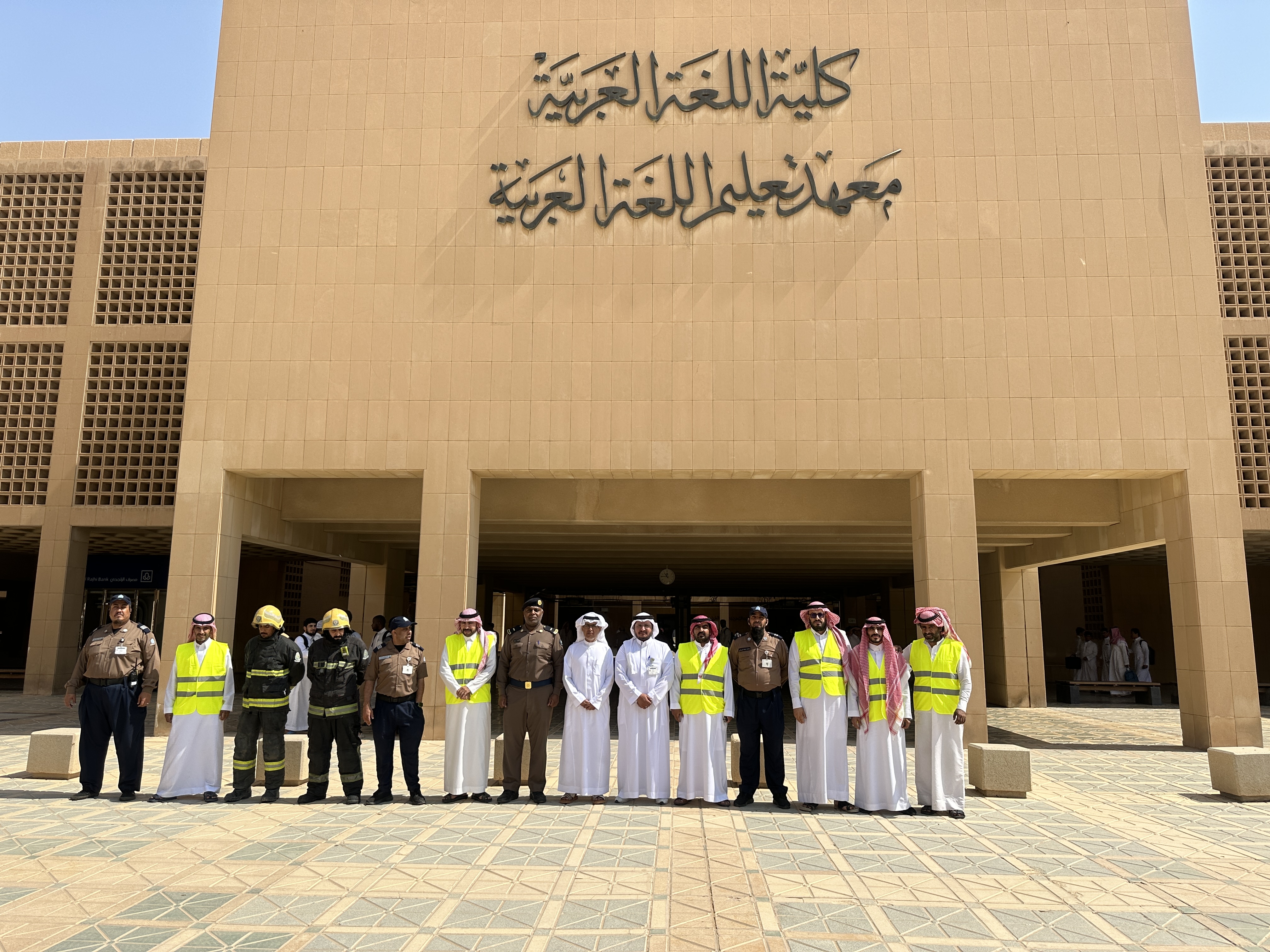 The Public Administration of Safety and University Security conducted a periodic virtual evacuation plan in the educational zone at the College of Arabic Language building on Wednesday, 3/4/1445 AH, under the supervision of Civil Defense and with the participation of relevant authorities.Director of the Public Administration of Safety and University Security, Mr. Sultan bin Hussein Al-Buqmi, clarified that the administration is keen to provide comprehensive protection for individuals and facilities by preparing comprehensive plans to address emergencies.