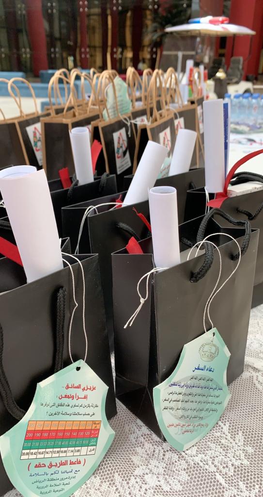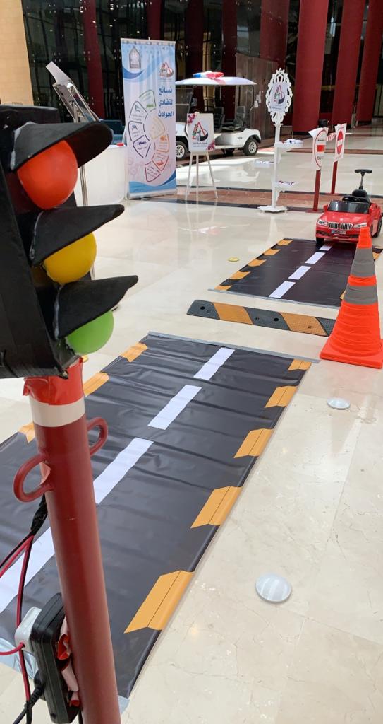 The General Administration of Safety and University Security organized a traffic safety awareness and education exhibition on Wednesday, 25/08/1442 AH, in the lobby of the administrative building (416) at King Abdullah City for Student Affairs.