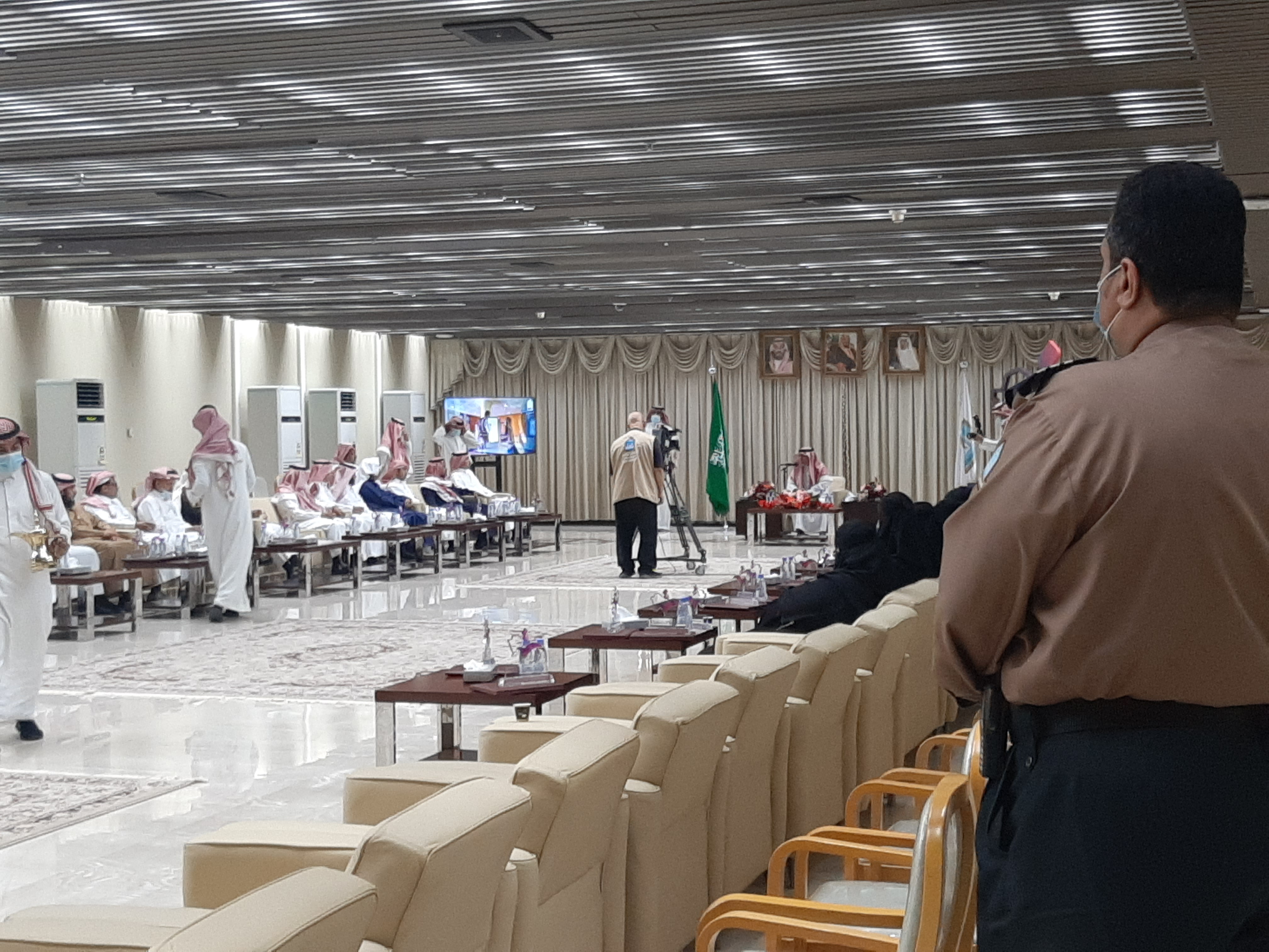 On Thursday, 05/05/1443 AH, the General Administration for Safety and University Security participated in the ceremony honoring the entities organizing the "Empowering Women and Their Development Role in the Era of King Salman" conference. The ceremony took place in the hospitality hall on the first floor of the university administration building.