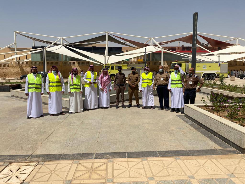 The General Administration of University Safety and Security conducted a virtual evacuation drill at the College of Media and Communication in the educational zone on Thursday, 11/10/1443 H, under the supervision of the Civil Defense and with the participation of relevant authorities.