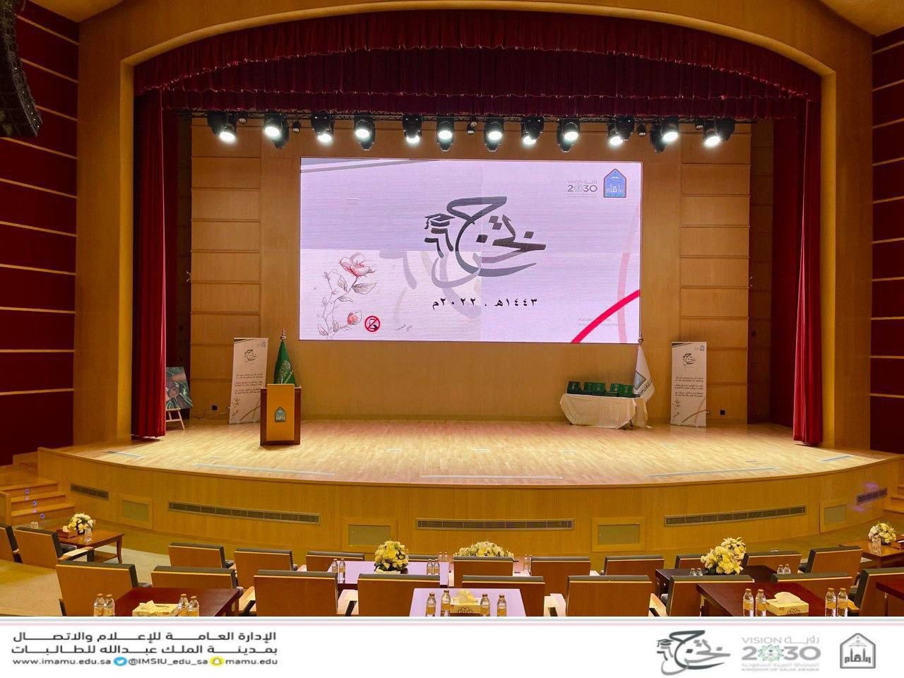 The General Administration of Safety and University Security participated on the evening of Monday, 14/11/1443 AH, in the graduation ceremony for the 66th batch of female students from the university in various academic degrees for the academic year 1443 AH. The event took place at the King Abdullah Conference Hall for Female Students, under the patronage of Her Royal Highness Princess Nourah bint Mohammed Al Saud, wife of the Governor of Riyadh Region.