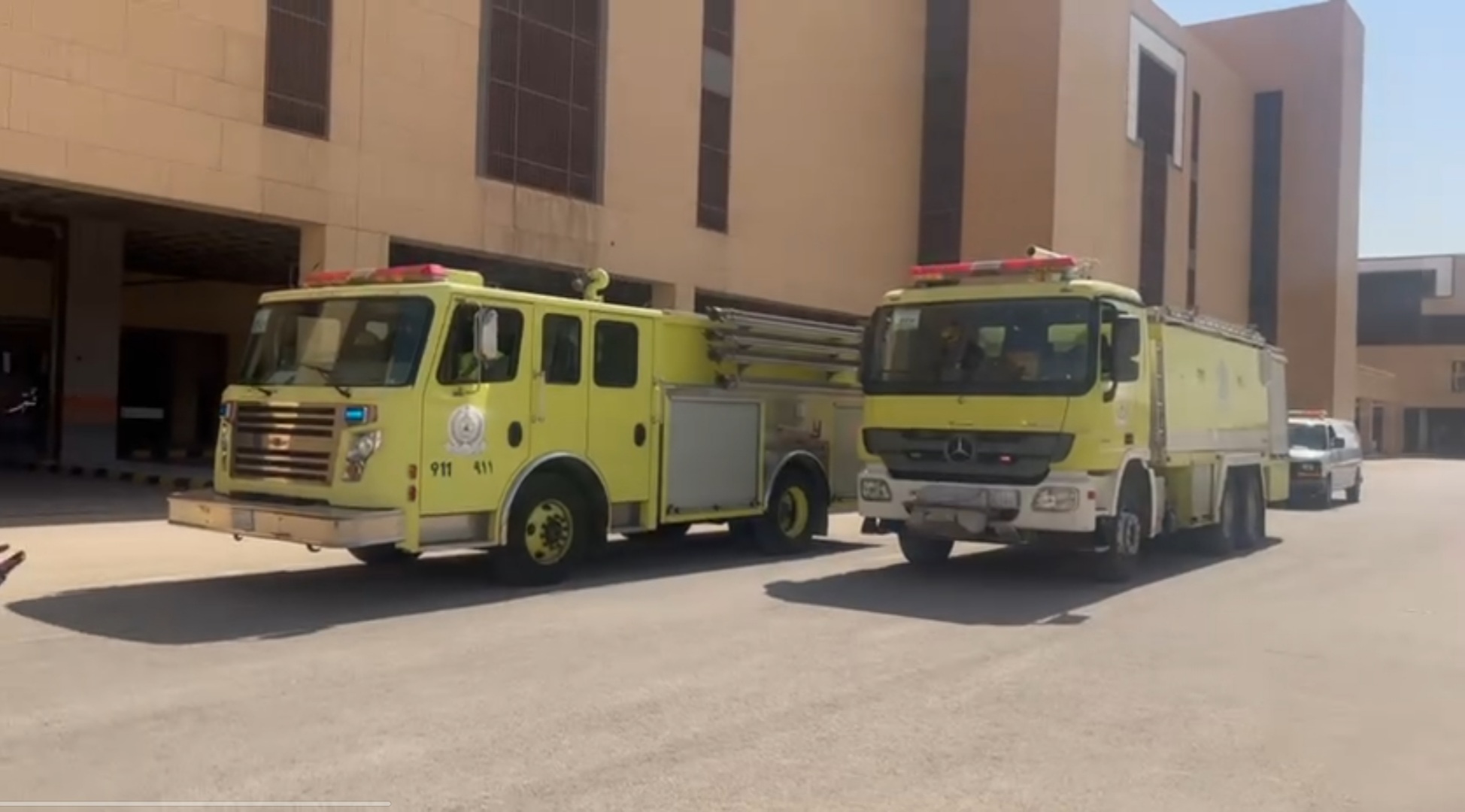 The General Administration of Safety and University Security implements an evacuation plan at King Abdullah City for Female Students in Building (322).