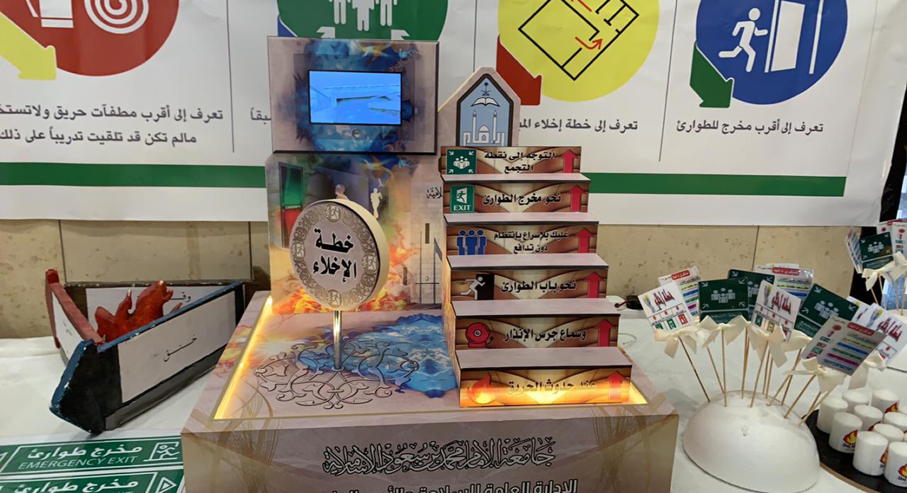 The General Administration of Safety and University Security, represented by the Women's Security Department, organized a workshop on the evacuation plan at King Abdullah City for Female Students in Building (323) on Tuesday, 07/04/1444 AH, to educate students and employees on the appropriate response in the event of a fire, God forbid.