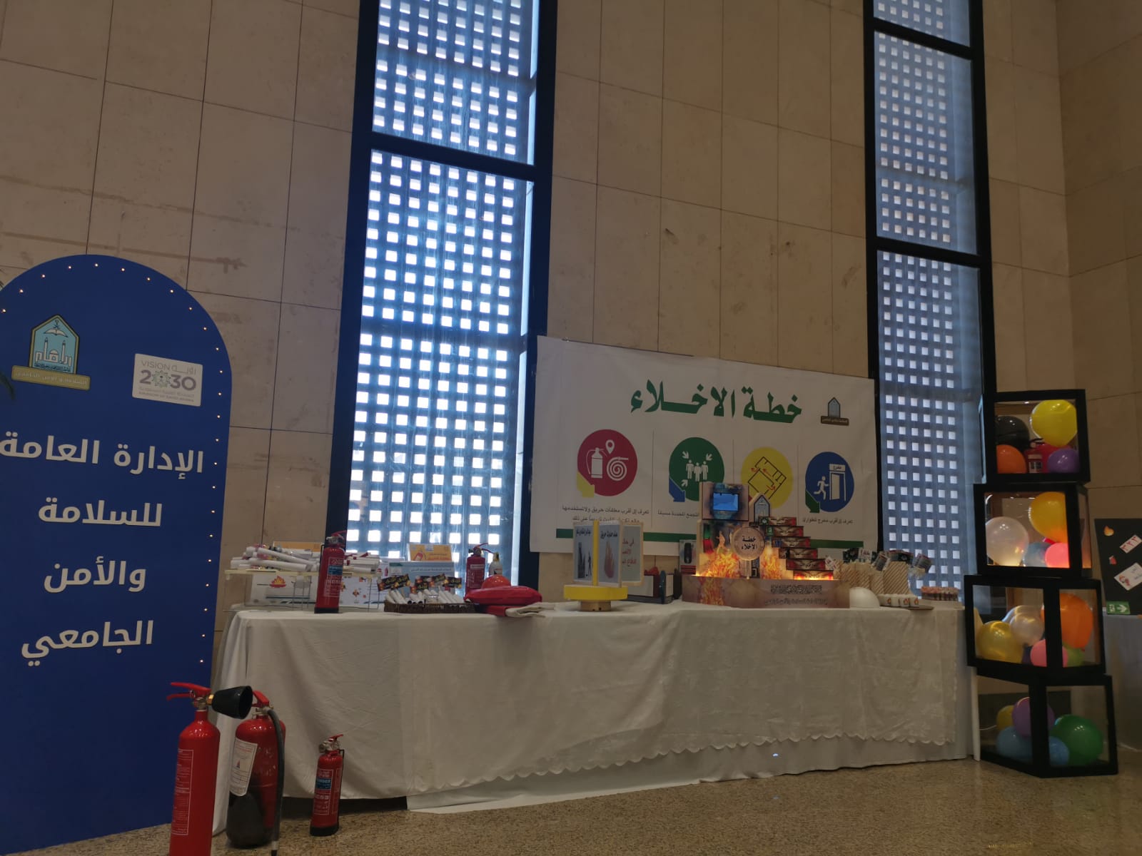 The Director General of the General Administration of Safety and University Security, Mr. Sultan bin Hussein Al-Buqmi, explained that the administration is keen on conducting workshops in the field of safety for practical training on how to use fire extinguishers and to familiarize attendees with emergency exits in the building.