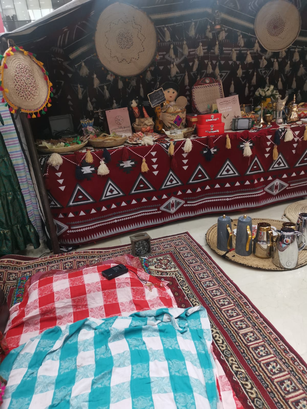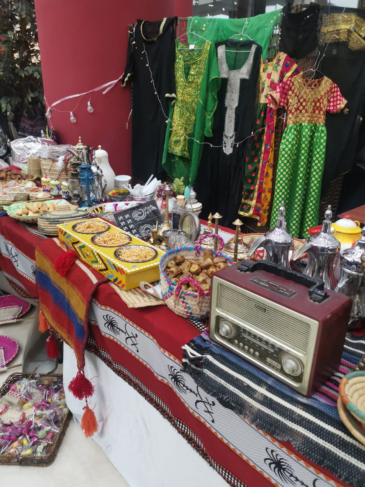 Mr. Al-Buqami added that the booth highlighted traditional Saudi clothing and attire, in addition to the historical and social lifestyle. The exhibition received a significant turnout from students and staff.