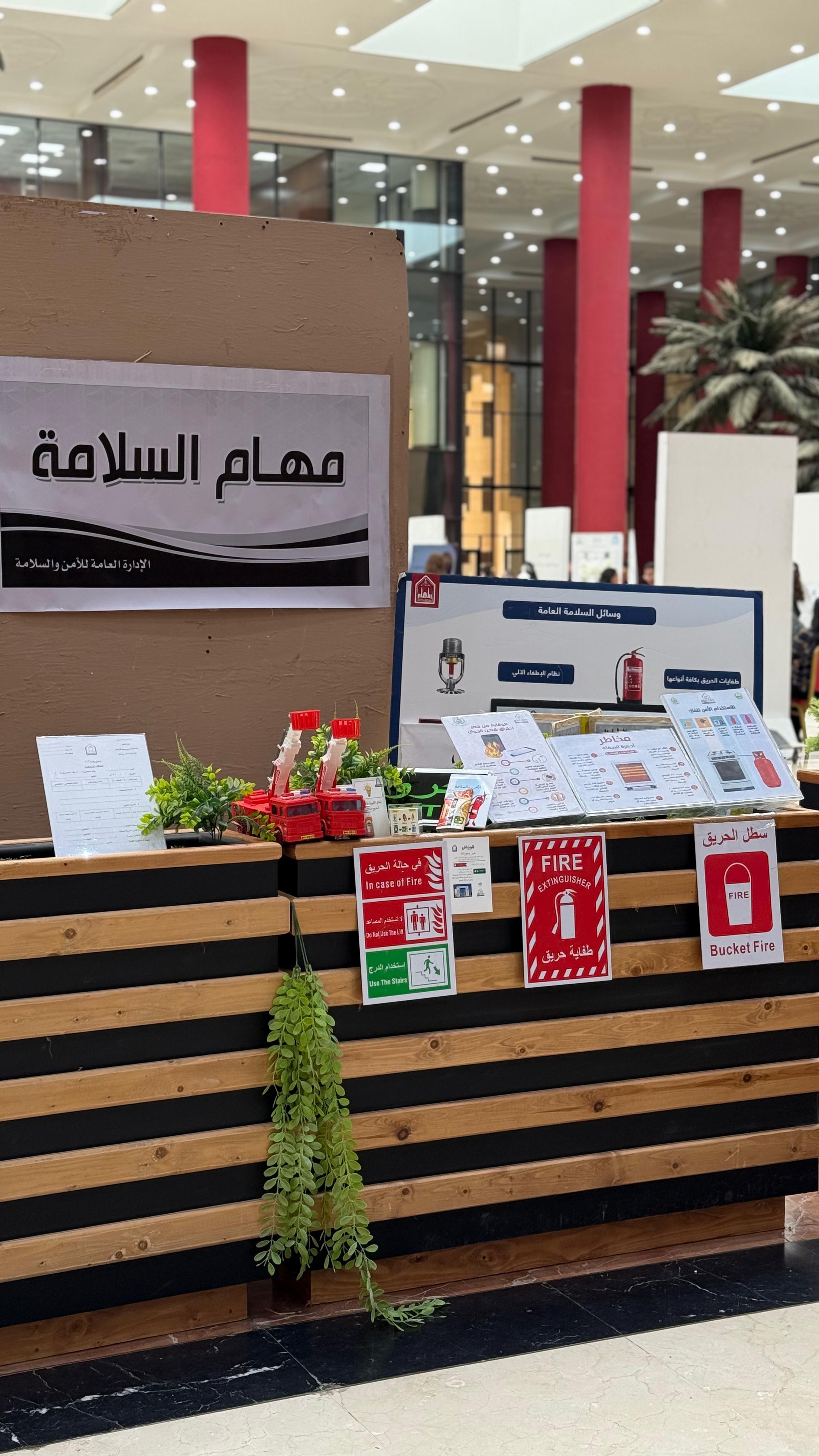 The Director General of the General Administration for Security and Safety, Mr. Sultan bin Hussein Al-Buqami, confirmed that the booth included a presentation on the role of security and safety in all its operations and services provided to faculty members, students, and visitors.