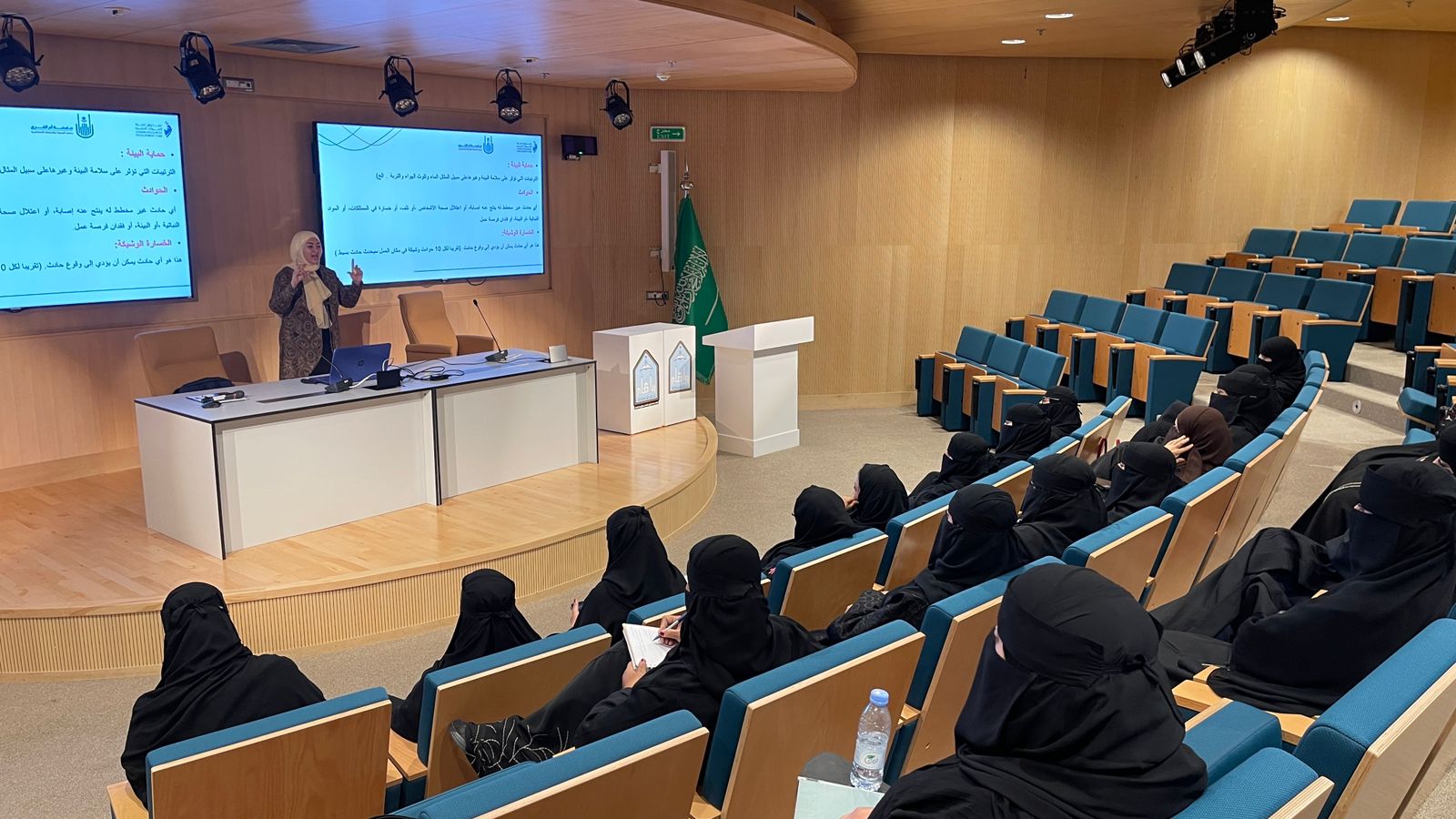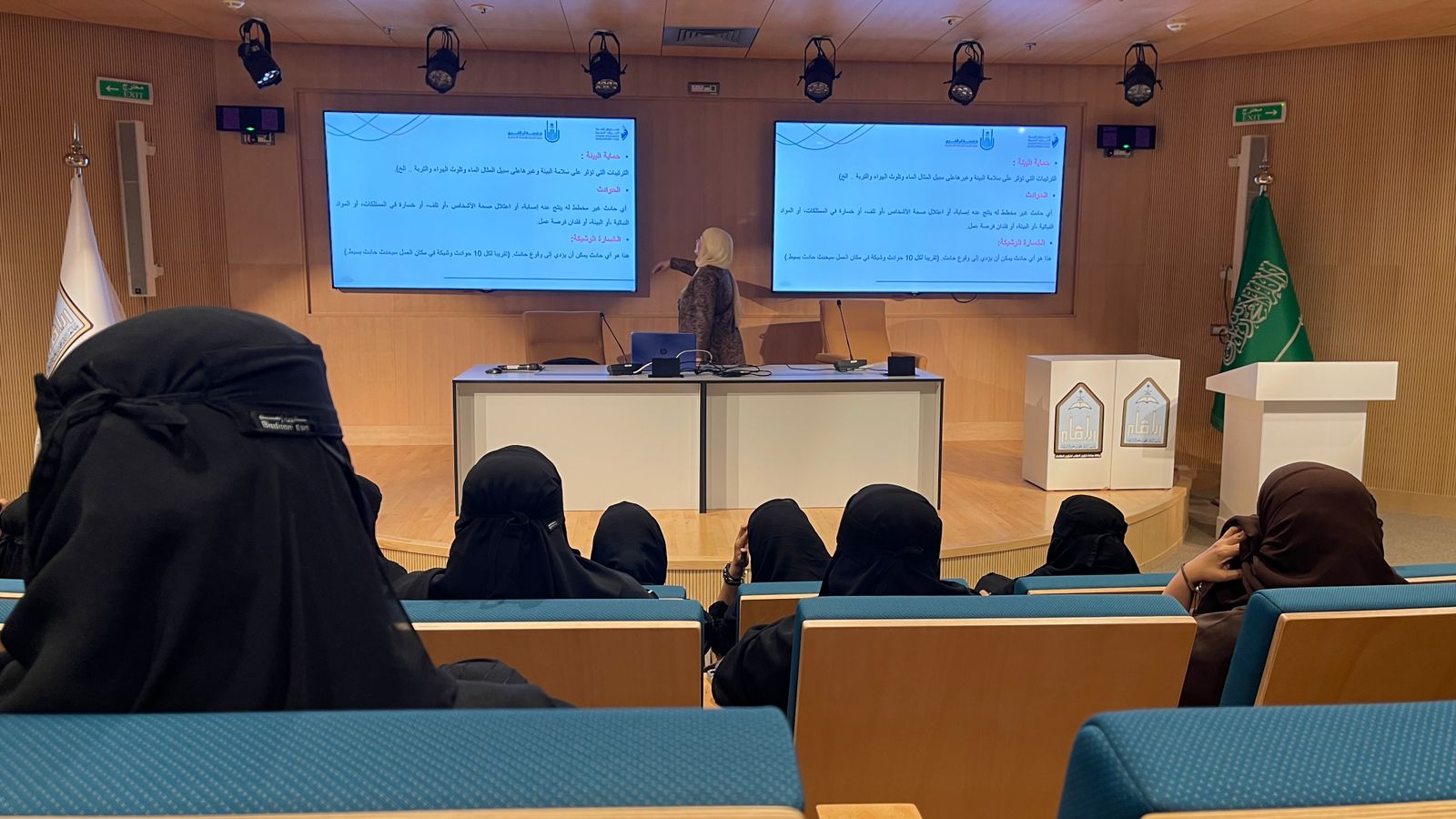The General Administration of Human Resources and the General Administration of Security and Safety, in collaboration with Umm Al-Qura University, organized a course titled "Occupational Safety and Health Management According to NEBOSH Approved Practices" for men from 19/10/1445AH to 23/10/1445AH. The course took place in the lecture hall of Building 402 for men and in Conference Building No. 412 at King Abdullah City for Female Students for women. This initiative targeted employees from contracting companies, benefiting 40 male and female employees from Tuwaiq and Rimāl Al-Sawahel companies.