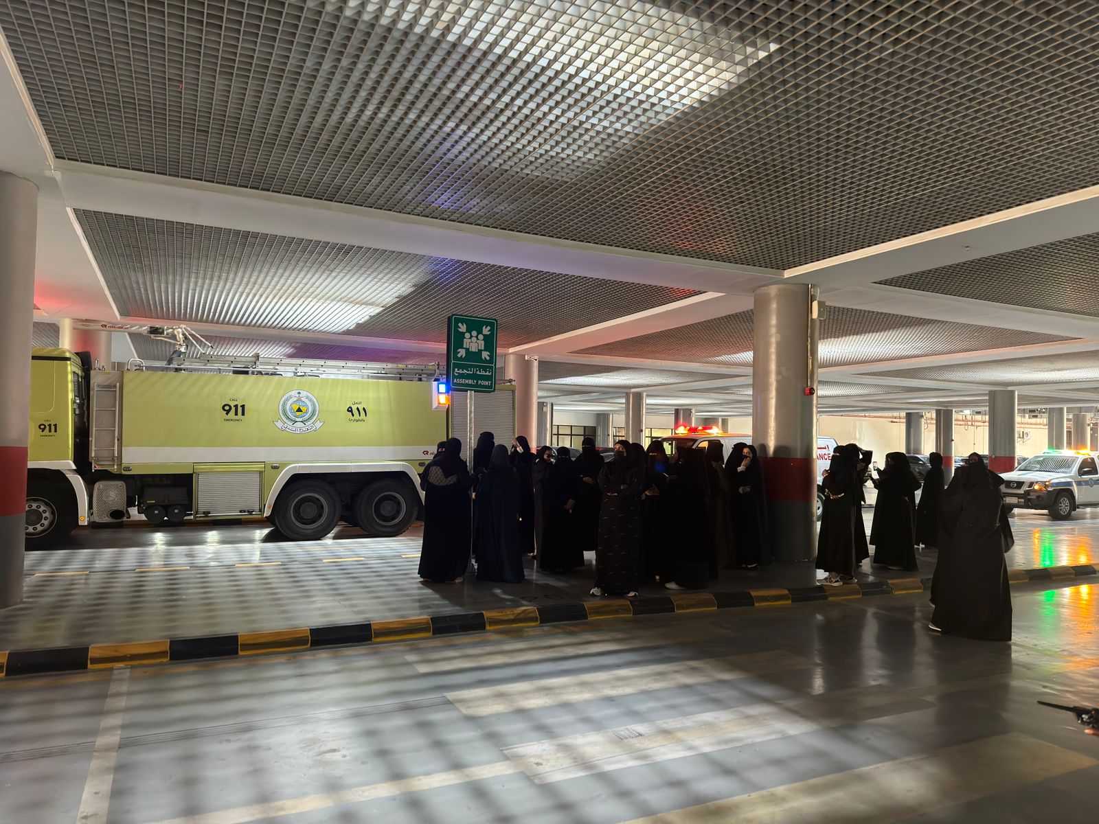 The General Administration for Safety and University Security implemented a simulated evacuation plan at King Abdullah University for Female Students in Building (412) on Wednesday, 21/06/1445 AH, under the supervision of the Civil Defense and with the participation of relevant authorities.