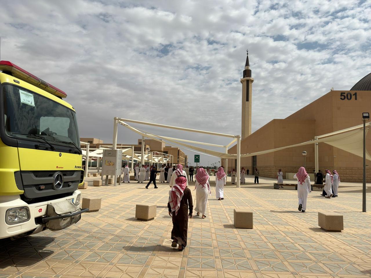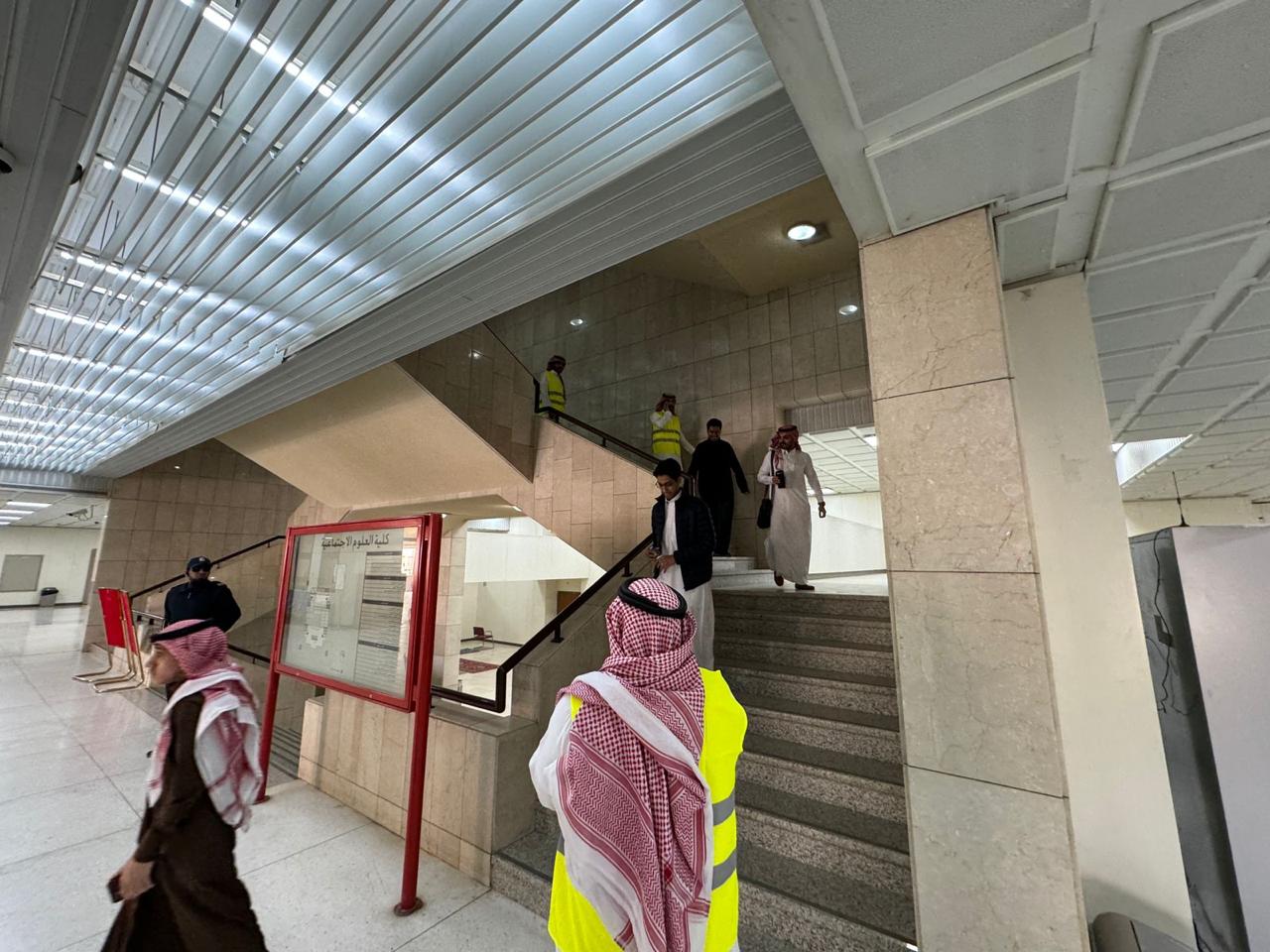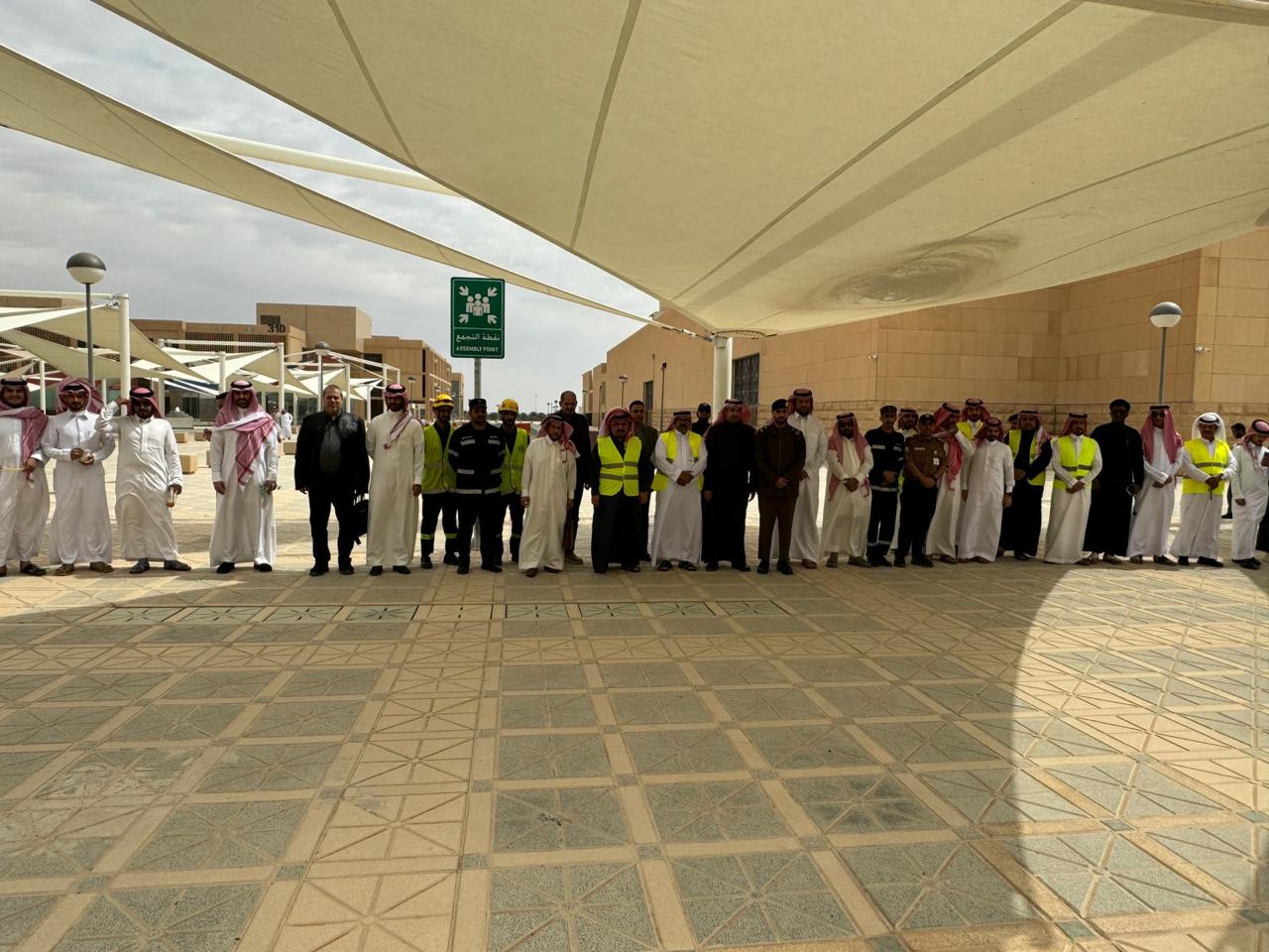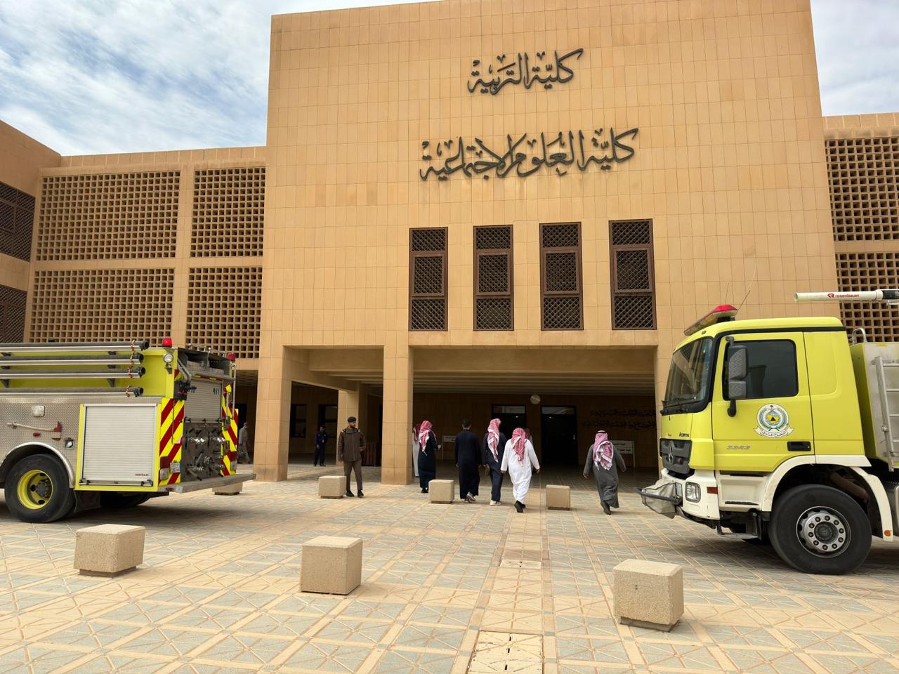 The General Administration of Security and Safety conducted a virtual evacuation drill in the educational zone at the College of Education and the College of Social Sciences on Wednesday, 25/08/1445 H, under the supervision of the Civil Defense and with the participation of relevant authorities.
