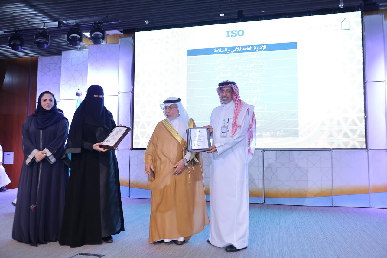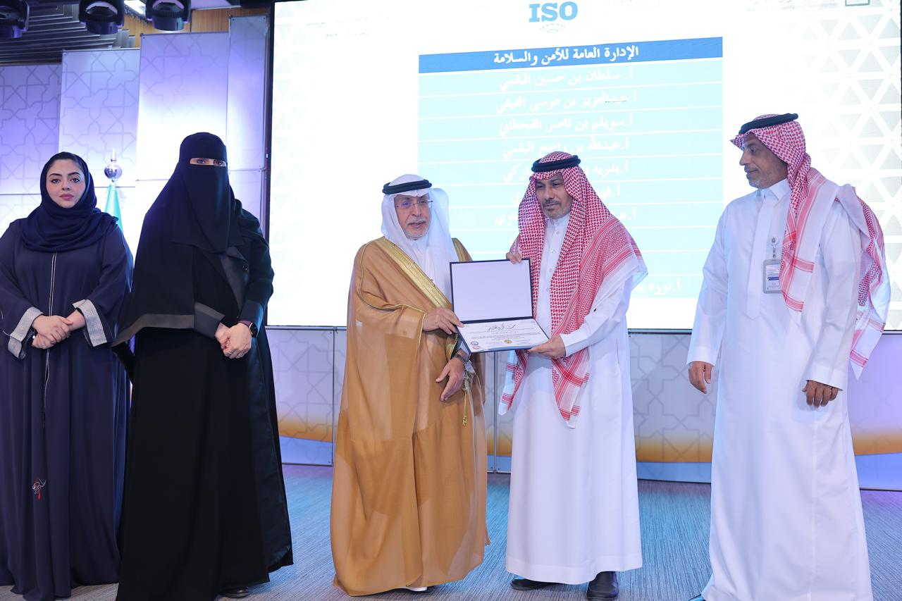 وفي نهاية الحفل كرّم معالي رئيس الجامعة الجهات الحاصلة على شهادة الأيزو ومن ضمنها الإدارة العامة للأمن والسلامة المشاركة في المشروع وفرق العمل على جهودهم المبذولة.