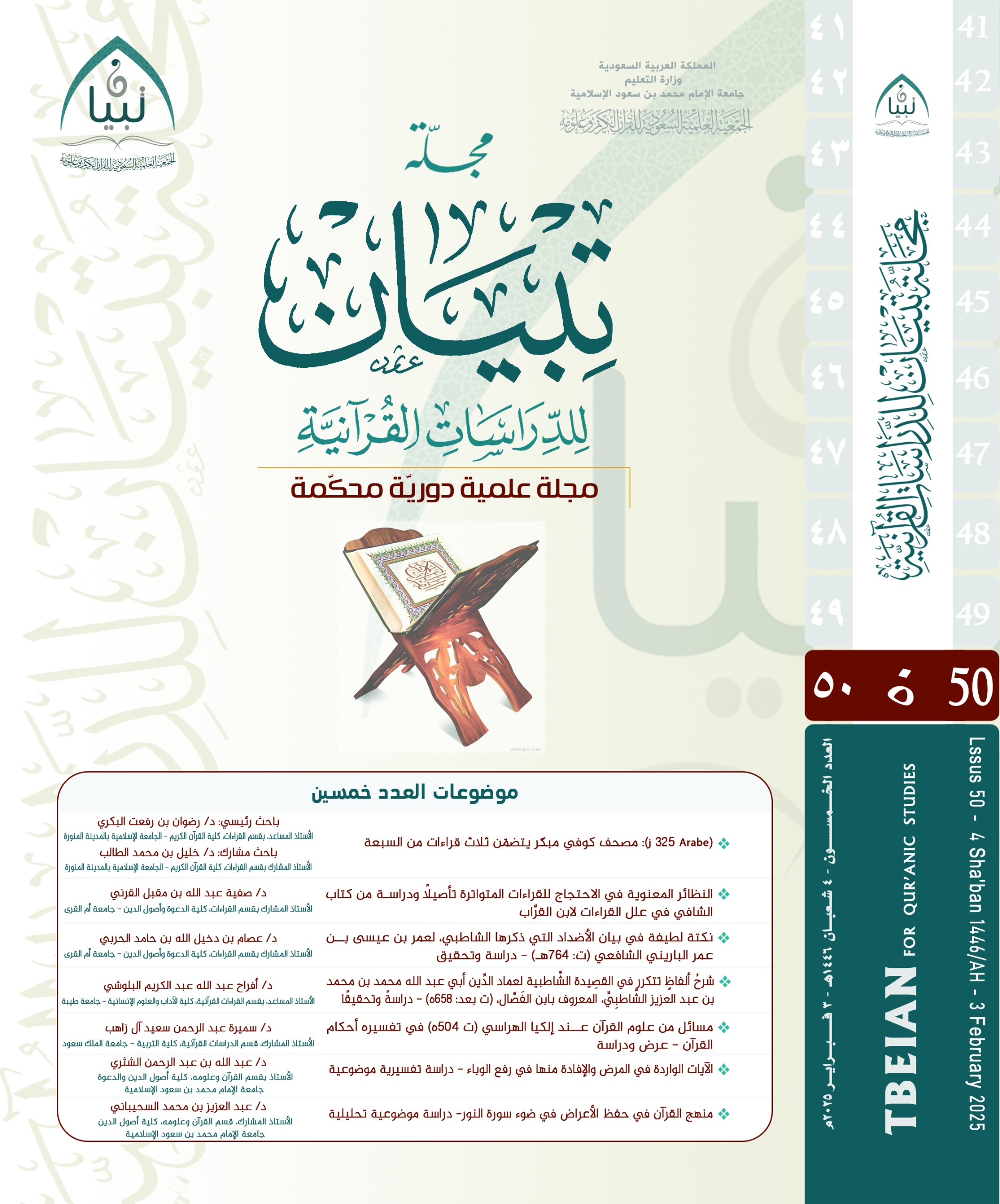 الحمد لله الذي بنعمته تتم الصالحات: صدور العدد: (50) من مجلة تبيان للدراسات القرآنية ويحتوي على 7 أبحاث محكمة: حمل العدد واطلع على الأبحاث من موقع المجلة الجديد على منصة جامعة الإمام محمد بن سعود الإسلامية عبر الرابط