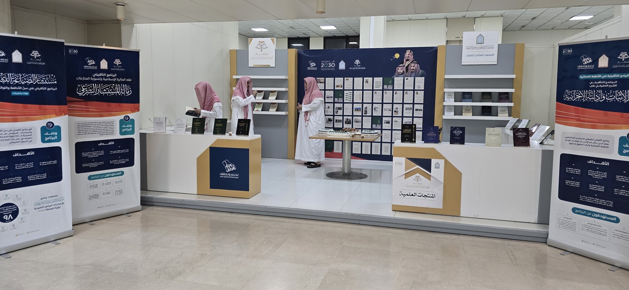 في جناح الجمعية بالمعهد العالي للقضاء بمناسبة #اليوم_الوطني_السعودي_94 واطلع خلال الزيارة على لوحة الدليل المعرفي للمحتوى التاريخي لليوم الوطني، ومنجزات الجمعية.