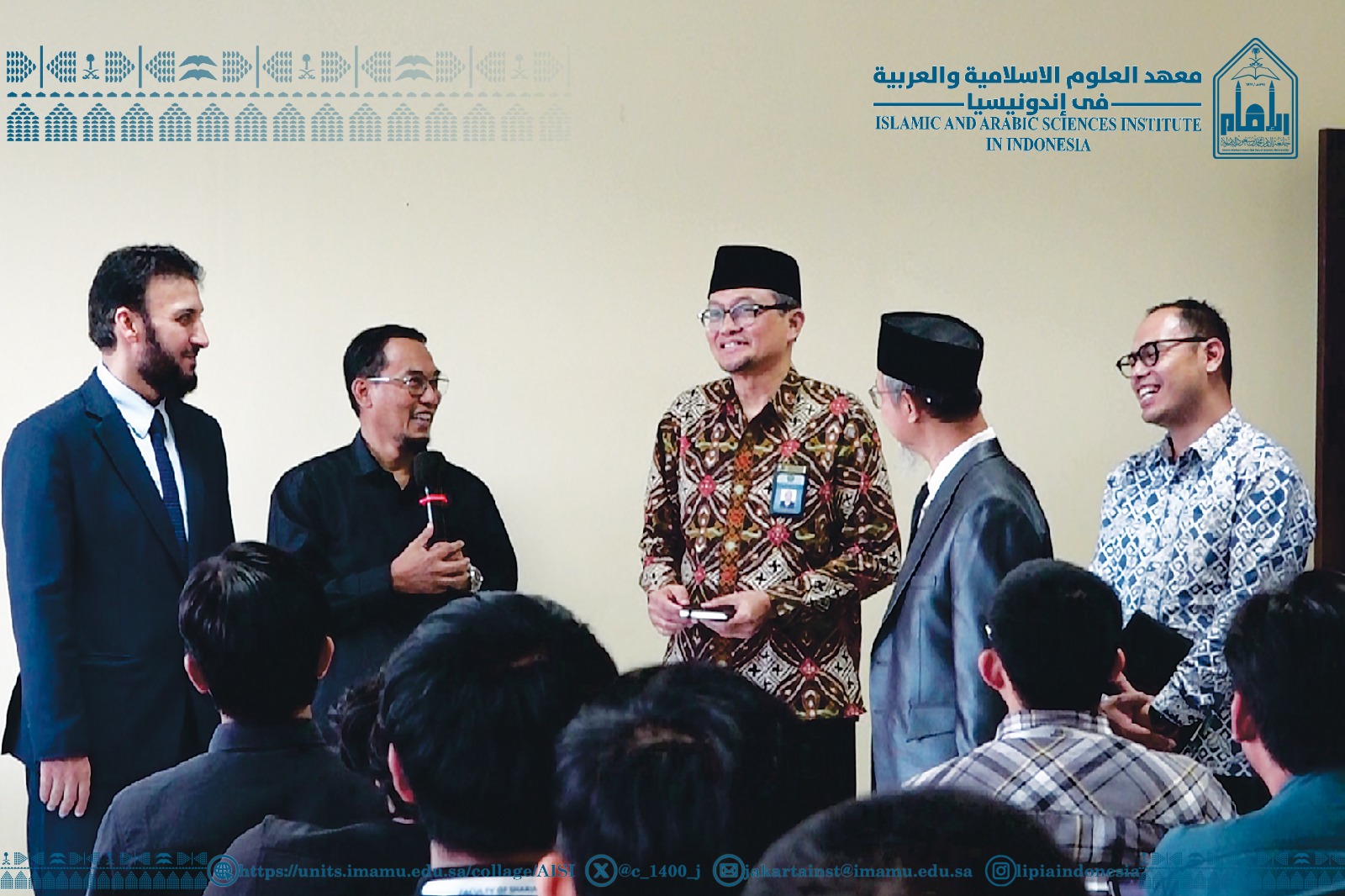 وحضر من جانب المعهد وكيل المعهد للشؤون التعليمية الدكتور/محمد بن فاهد النوفل، ووكيل المعهد الدكتور/سطام بن عبدالرحمن النشمي، ورئيس قسم العلوم الإدارية والمالية الدكتور/ أنس بن محمد الشيبان، ورئيس قسم الشريعة الدكتور/سليمان بن زعل العنزي، ورئيس قسم الإعداد اللغوي الدكتور/ صالح بن مده الجدعاني، ورئيس قسم اللغة العربية الدكتور/ خليل بن إبراهيم العباس، وعضو هيئة التدريس بقسم اللغة العربية الدكتور/بوديان شاه ، ومدير إدارة الخدمات المساندة الأستاذ/ مهنا بن محمد المهنا، ورئيس وحدة الموفدين والمتعاقدين الأستاذ/ إبراهيم الصنيتان، وأ. مهدي السقاف.