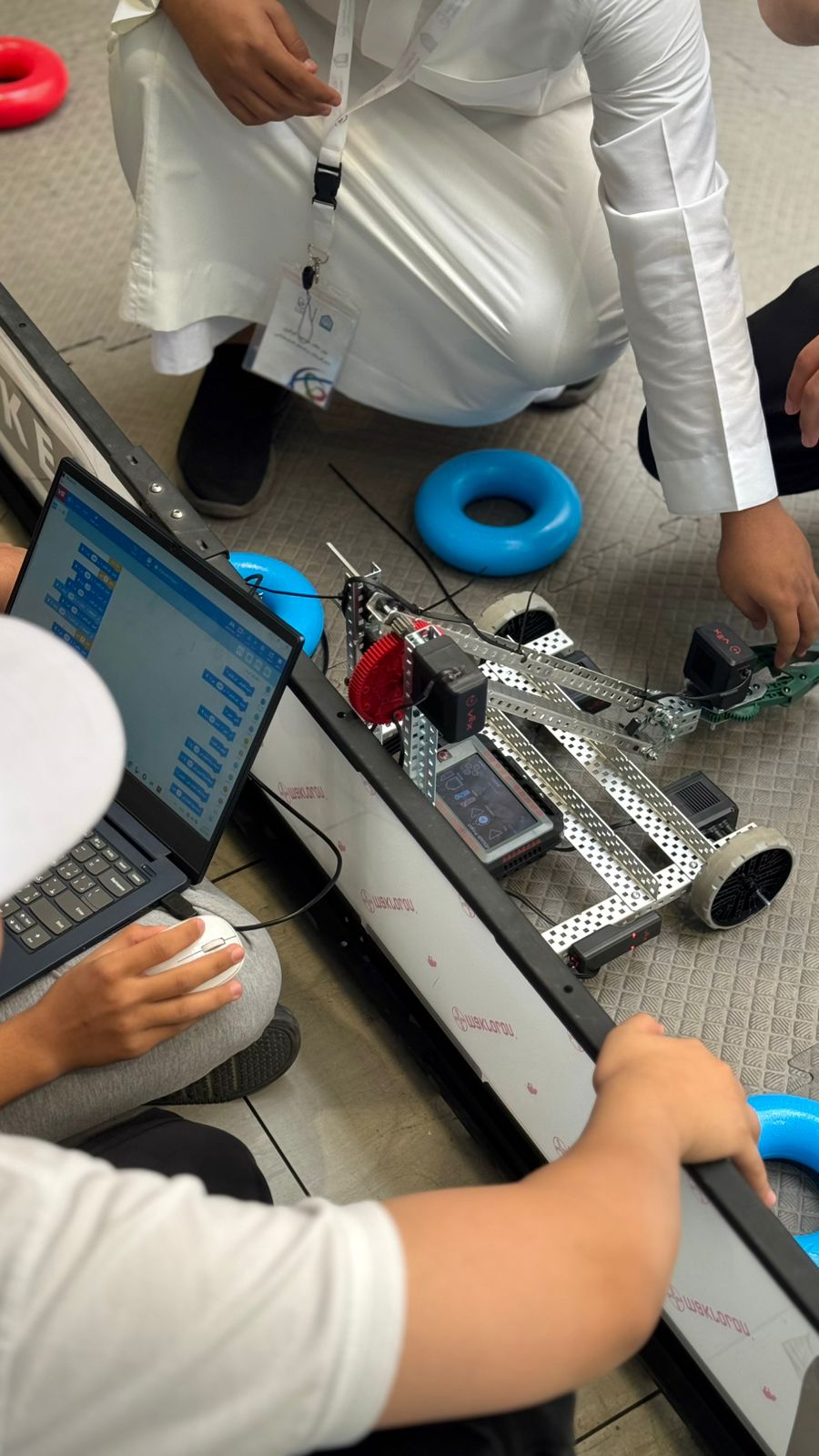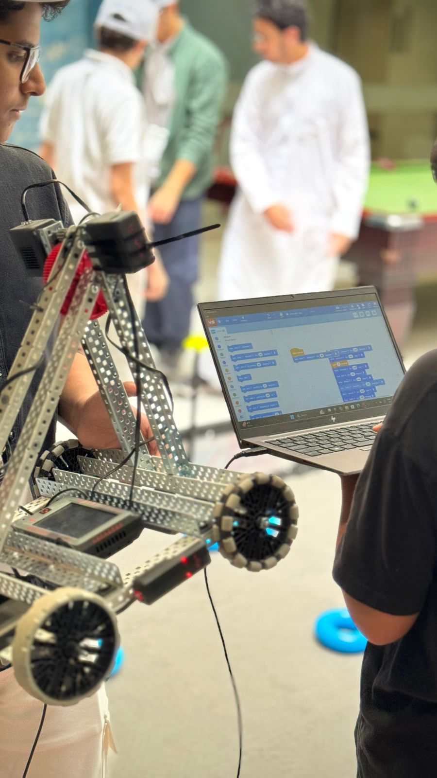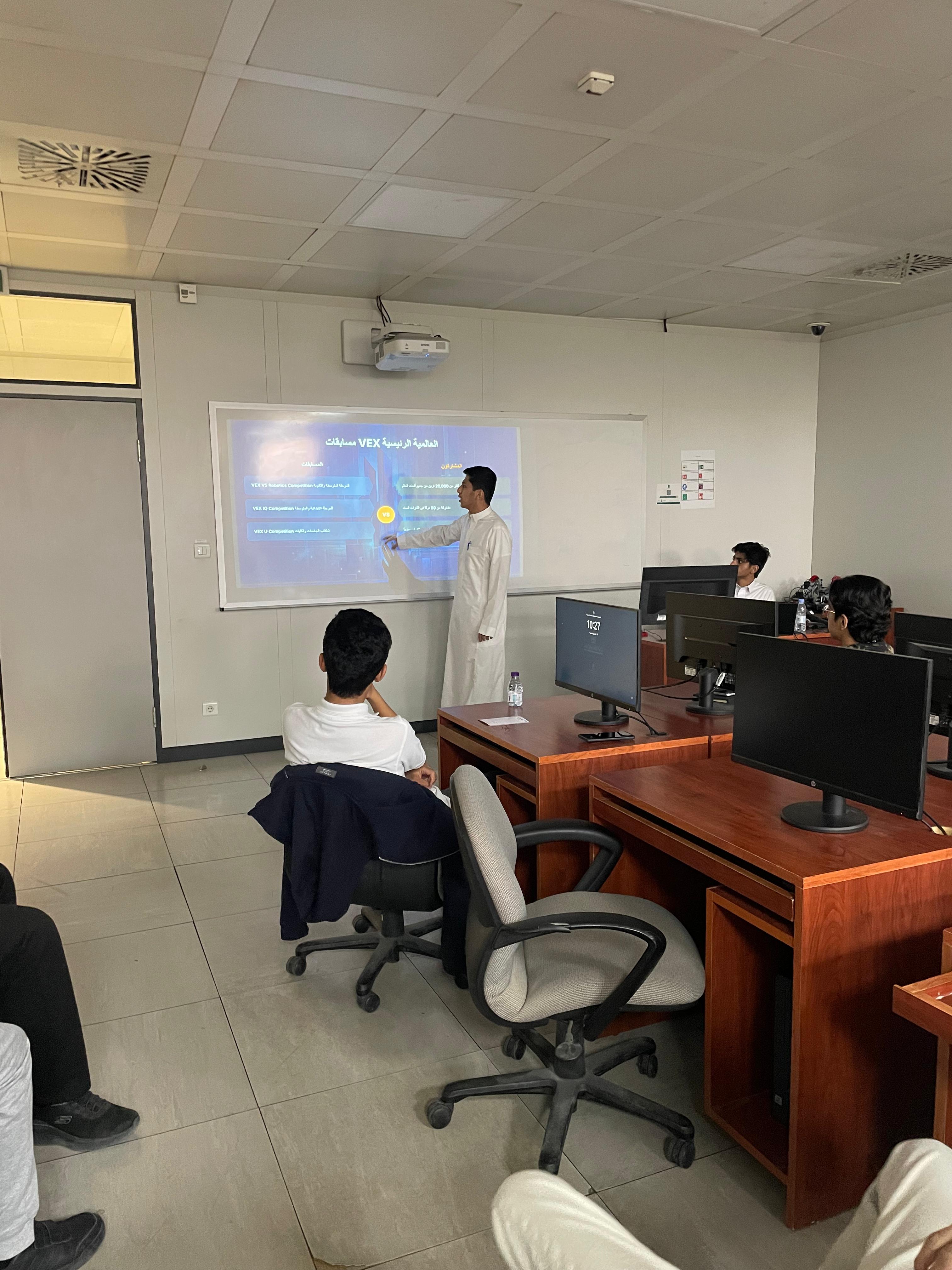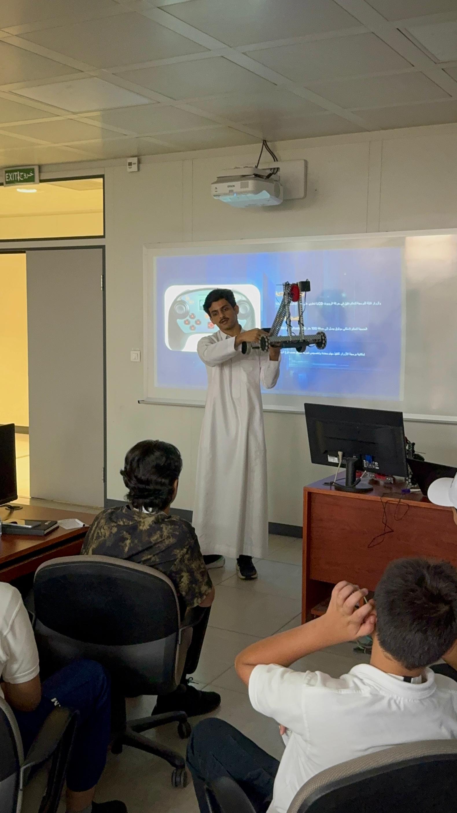 وتضمنت المشاركة إقامة دورة تدريبية متخصصة في مجال الروبوتات والذكاء الاصطناعي VEX Robotics في الفترة 15-16/7/2025م لبرمجة وتصميم الروبوت والتفكير المنطقي والعمل الجماعي، والتي قدمها أبناؤنا الطلاب في الكلية: الطالب/ معاذ بن عبدالرحمن آل برياع والطالب/ نواف بن نوفل النوفل والطالب/ محمد بن عبدالإله المجحد.