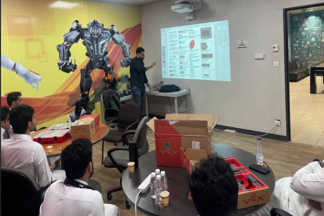 وجاءت هذه الدورة بالتعاون مع شركة كوماتيك العربية السعودية المحدودة، حيث تهدف إلى تأهيل الطلاب والطالبات للمشاركة في بطولة VEX-Robotics للجامعات على مستوى المملكة للعام الأكاديمي 2025/2026، بالإضافة إلى إعدادهم للمشاركة في المسابقة العالمية التي ستُقام في مدينة دالاس بالولايات المتحدة الأمريكية عام 2026 بإذن الله.