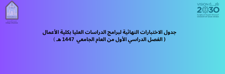جدول الاختبارات النهائية لبرامج الدراسات العليا بكلية الأعمال للفصل الأول من العام الجامعي 1447 هـ