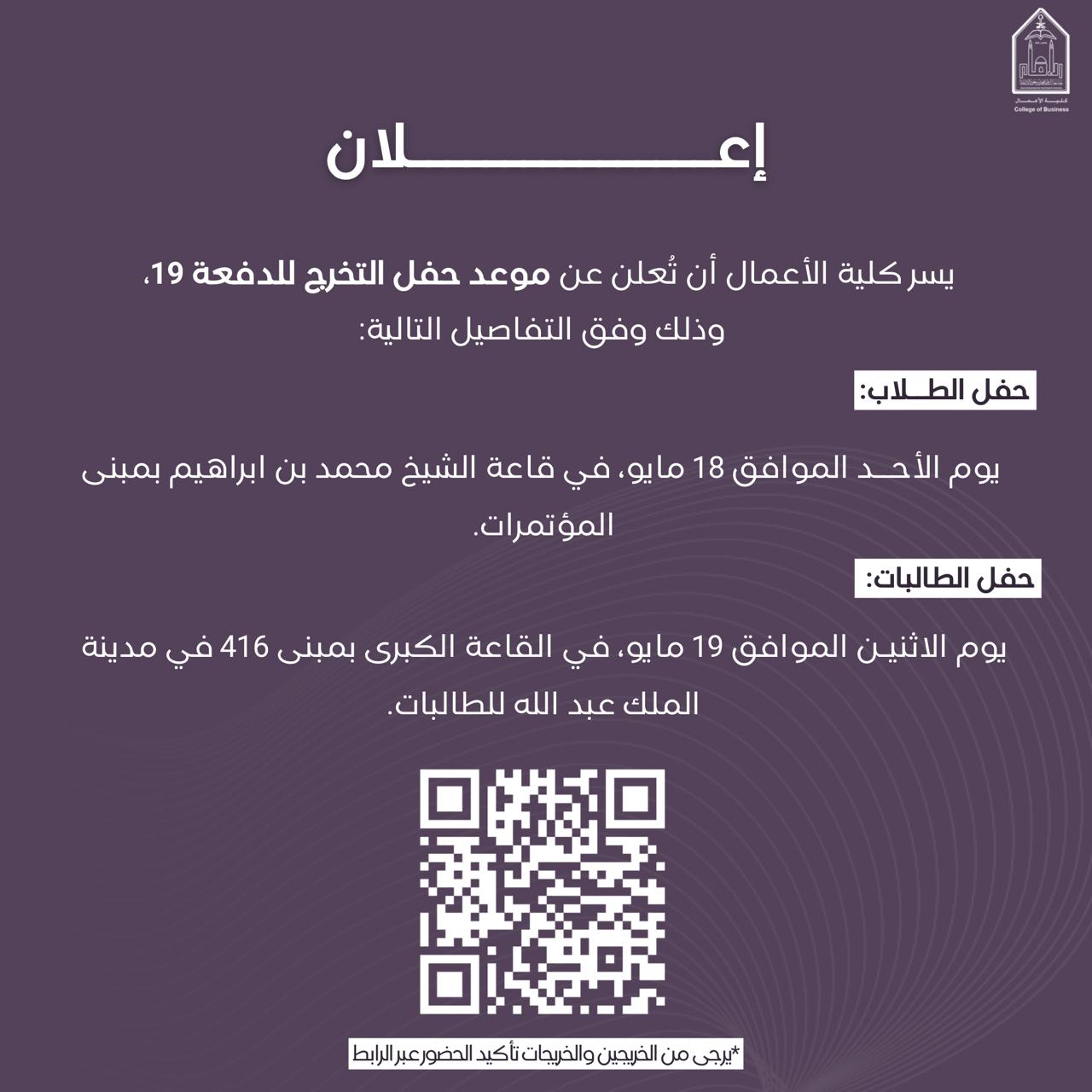 حفل تخرج كلية الأعمال لـلدفعة 19 رواد 19 (الدفعة 69 جامعياً)