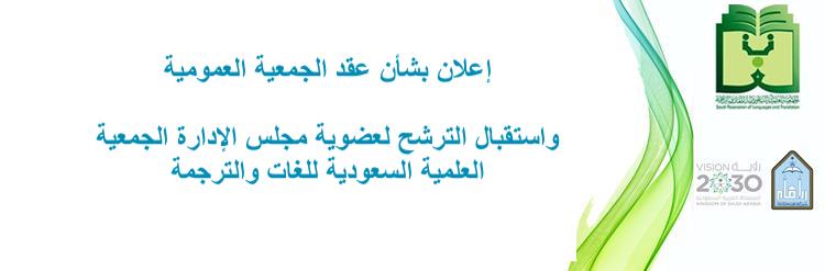 إعلان بشأن عقد الجمعية العمومية واستقبال الترشح لعضوية مجلس الإدارة الجمعية العلمية السعودية للغات والترجمة