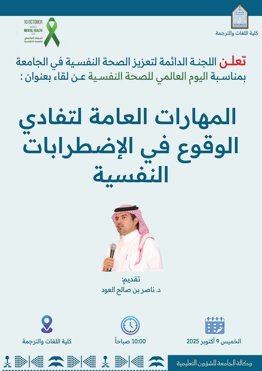 لقاء بعنوان المهارات العامة لتفادي الوقوع في الاضطرابات النفسية
