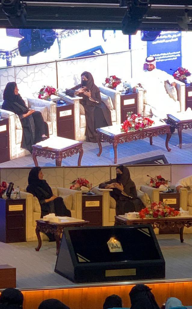 و ثم عقدت ورشة حوارية برئاسة د. نوره العنزي شارك فيها الدكتورة ندى عبدالرحمن المخضب مدير عام التخصصات الاجتماعية والاستاذ يوسف الشمري والتي استهدفت استعراض التراخيص المهنية للممارسين ومعاييرها وشارك د. وليد الزهراني في إدارة الجلسة للإجابة على استفسارات الحضور عبر اتصال الأونلاين .