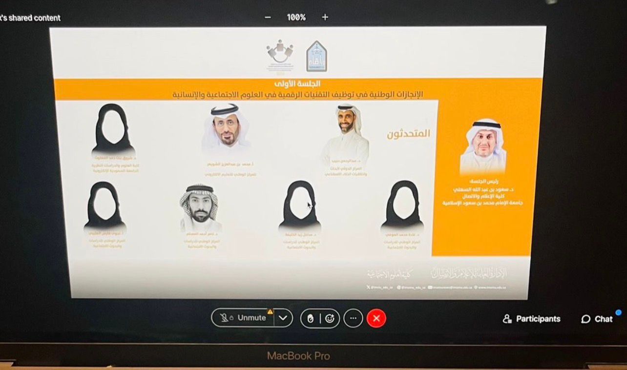برعاية معالي رئيس جامعة الإمام محمد بن سعود الإسلامية أ.د. أحمد بن سالم العامري، انطلقت اليوم الاثنين 2025/11/24 أعمال المؤتمر الدولي الافتراضي “التأثير المتبادل بين العلوم الاجتماعية والإنسانية والتقنيات الرقمية” حيث تضمن اليوم الأول أربع جلسات علمية متخصصة شارك فيها نخبة من الباحثين والخبراء من داخل المملكة وخارجها، عبر منصة Webex.