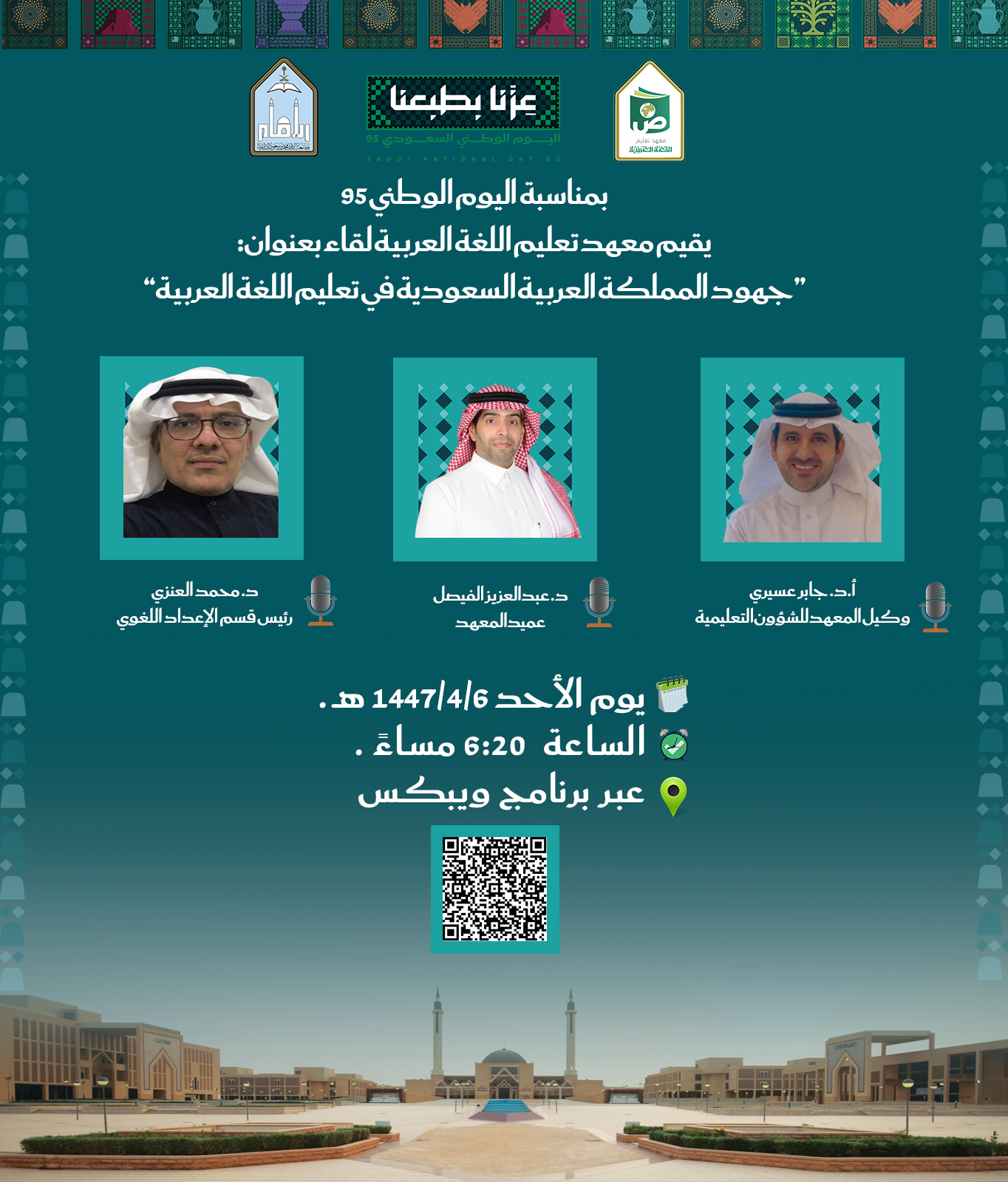 ضمن فعاليات الاحتفاء باليوم الوطني الخامس والتسعين المعهد يقيم لقاء عن (جهود المملكة العربية السعودية في تعليم اللغة العربية)