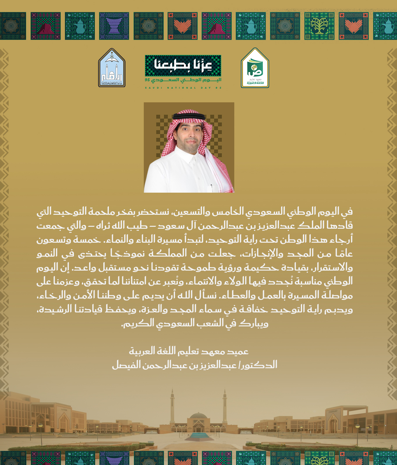 كلمة عميد المعهد بمناسبة اليوم اليوم الوطني السعودي الـ95