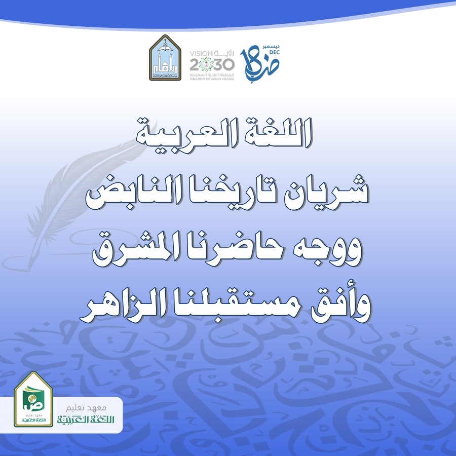 بمناسبة اليوم العالمي للغة العربية، الذي يوافق 18 ديسمبر من كل عام، نظم معهدُ اللغة العربية برنامجًا علميًا وثقافيًا، شمل إقامة محاضرات علمية متخصصة، إلى جانب أنشطة ثقافية ومعرفية ومنشورات تعريفية، وذلك في إطار حرص المعهد على إبراز مكانة اللغة العربية وتعزيز حضورها في المشهد العلمي والثقافي.