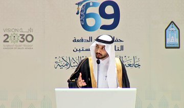 -المعيد الخريج من قسم العلاقات العامة/ معاذ الفضلي الذي ألقى كلمة الخريجين.