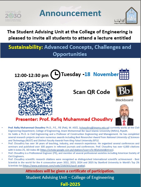 The Student Advising Unit at the College of Engineering announces a lecture entitled: