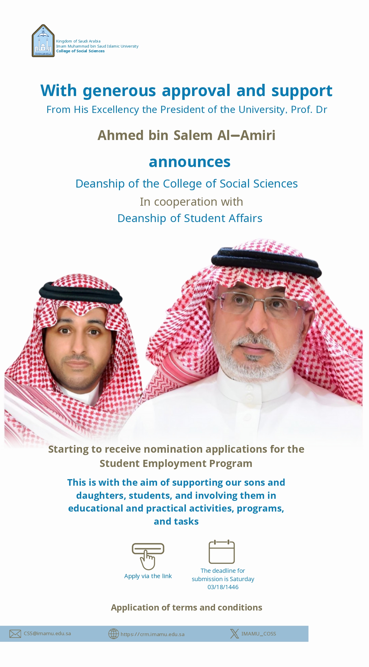Under the direction of His Excellency the Dean of the College of Social Sciences, Dr. Faisal Al-Muharib, His Excellency the Vice Dean for Educational Affairs, Dr. Abdul Hadi Al-Mughari,on a supervisory visit to ensure the progress of the final exams in th