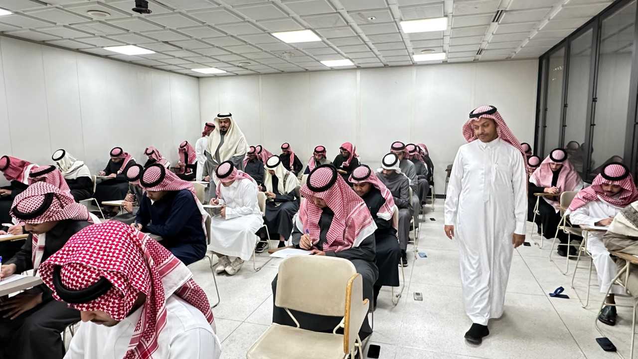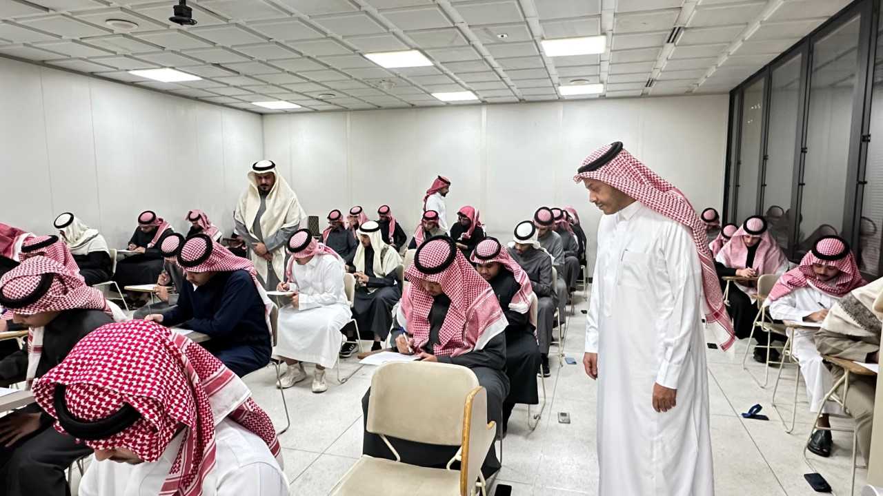 Under the direction of His Excellency the Dean of the College of Social Sciences, Dr. Faisal Al-Muharib His Excellency the College Vice Dean for Educational Affairs Dr. Abdul Hadi Al-Mughari made a supervisory visit to the final exams locations for students to ensure the progress of the final exams in the scientific departments.