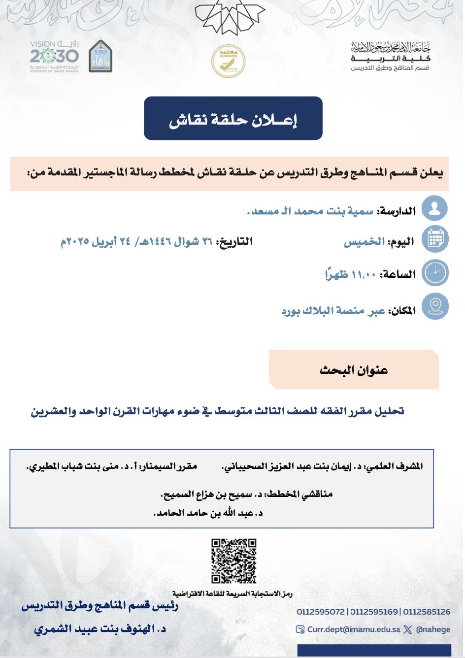 اعلان مناقشة رسالة الدكتوراه للدارسة سهام الحمود.pdf