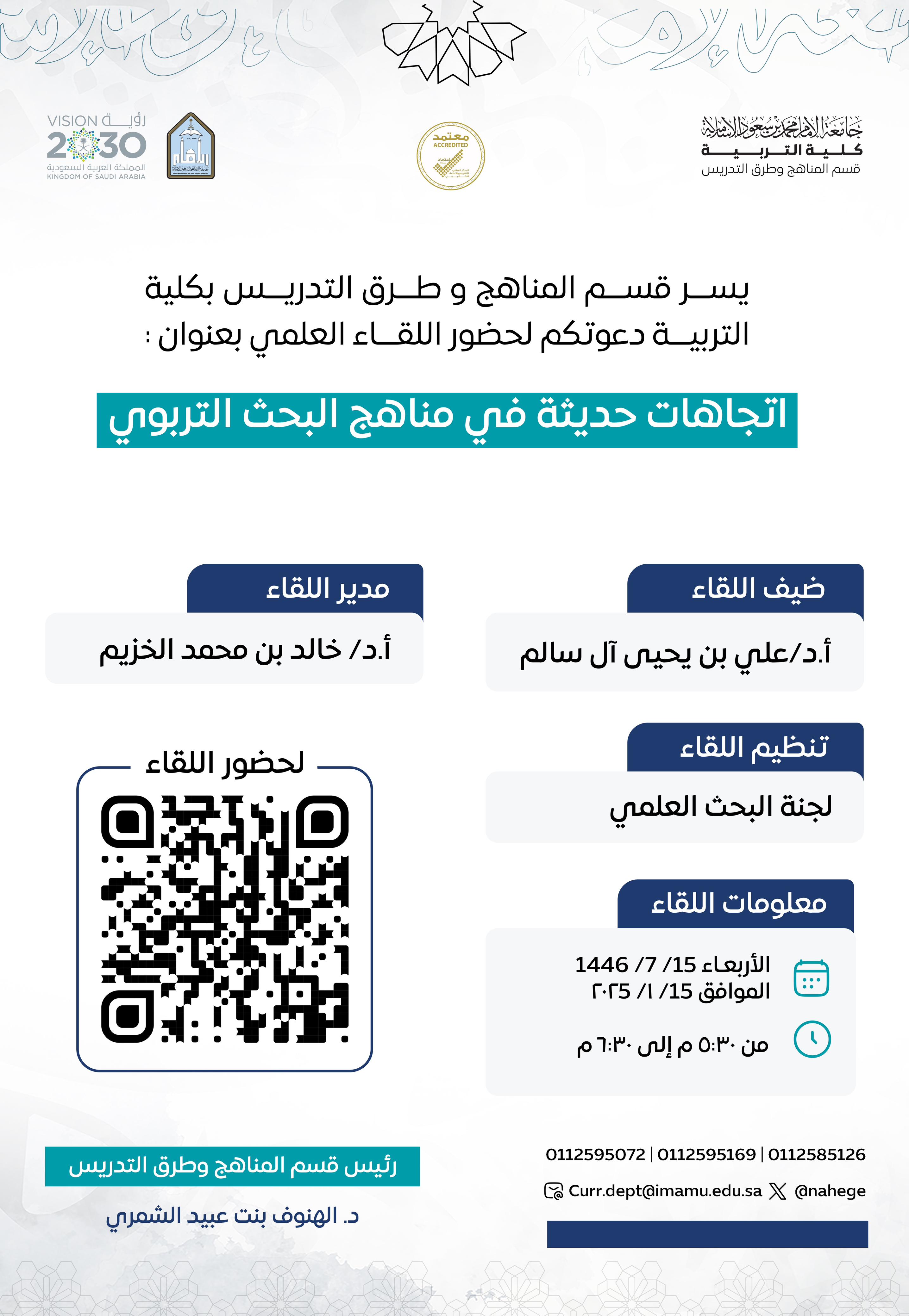دعوة لحضور اللقاء العلمي بعنوان اتجاهات حديثة في مناهج البحث التربوي.jpg
