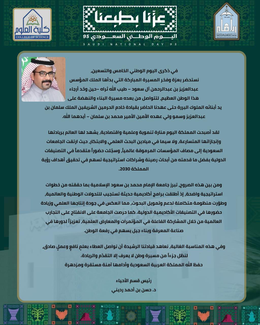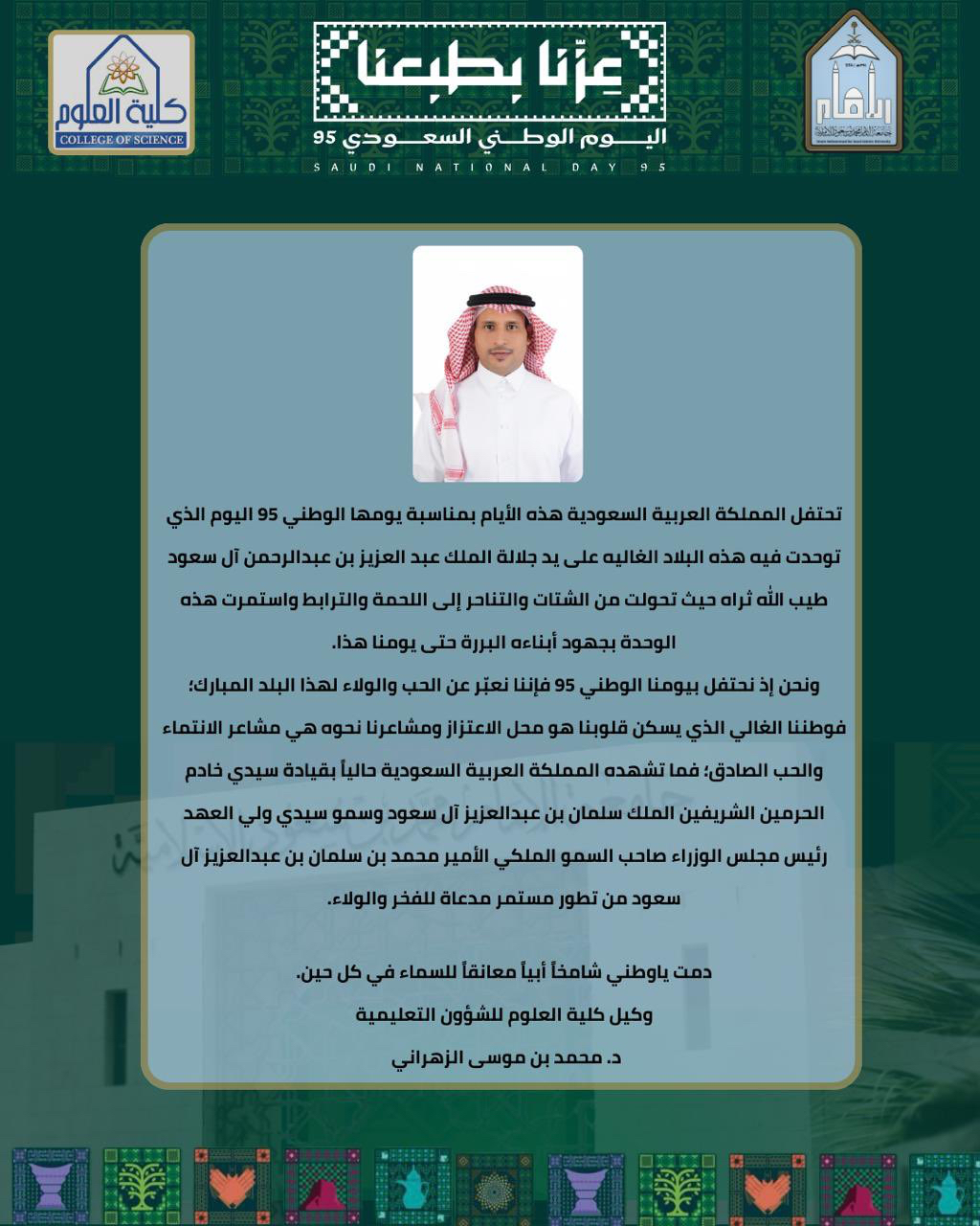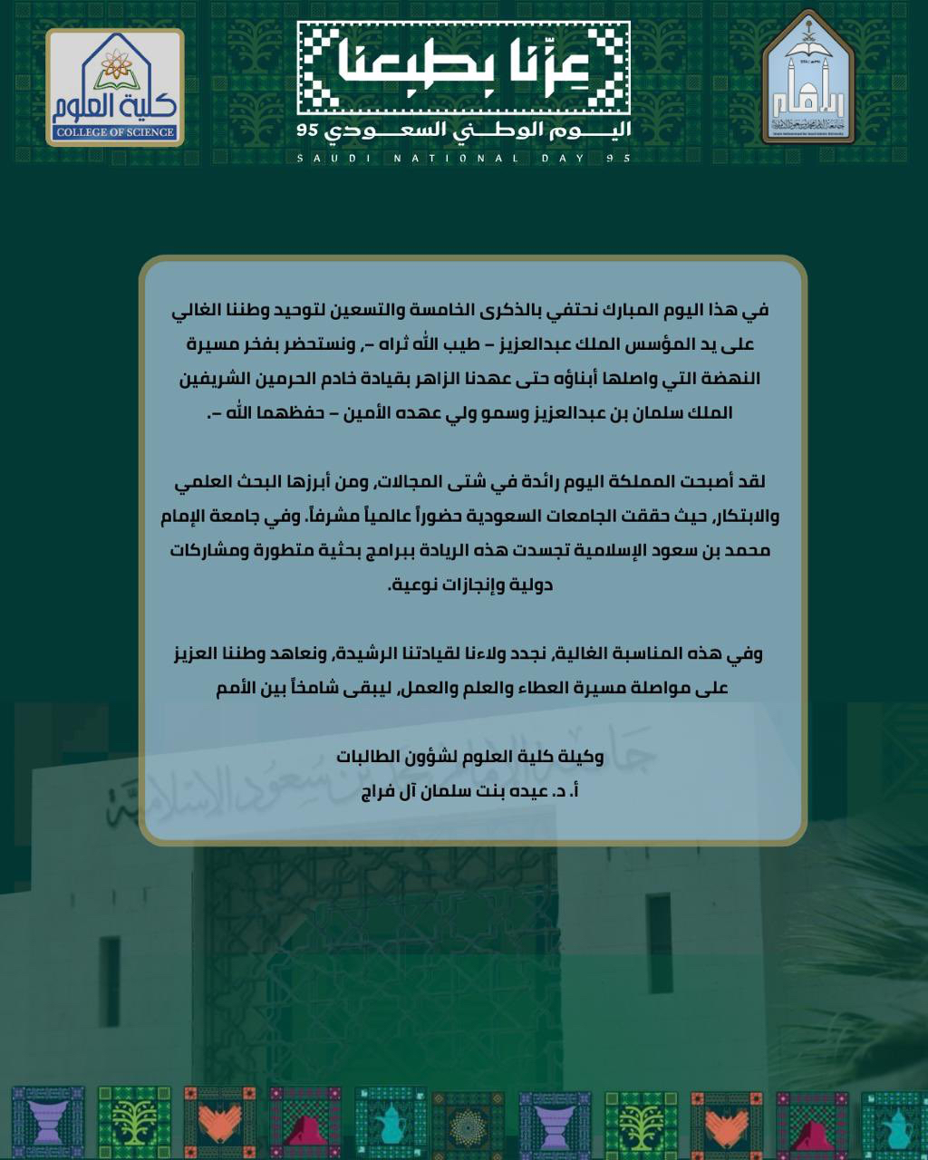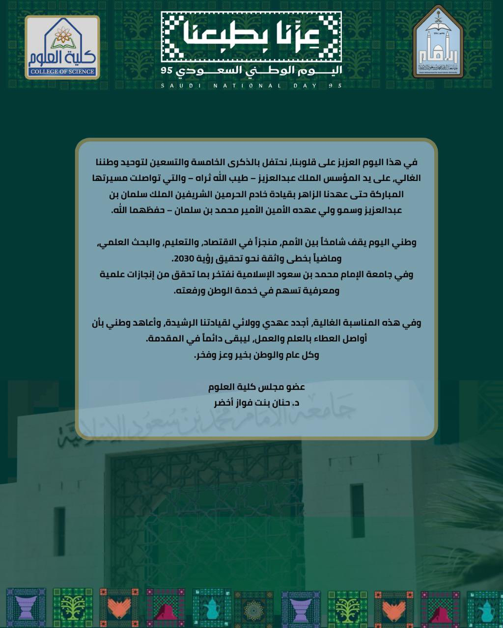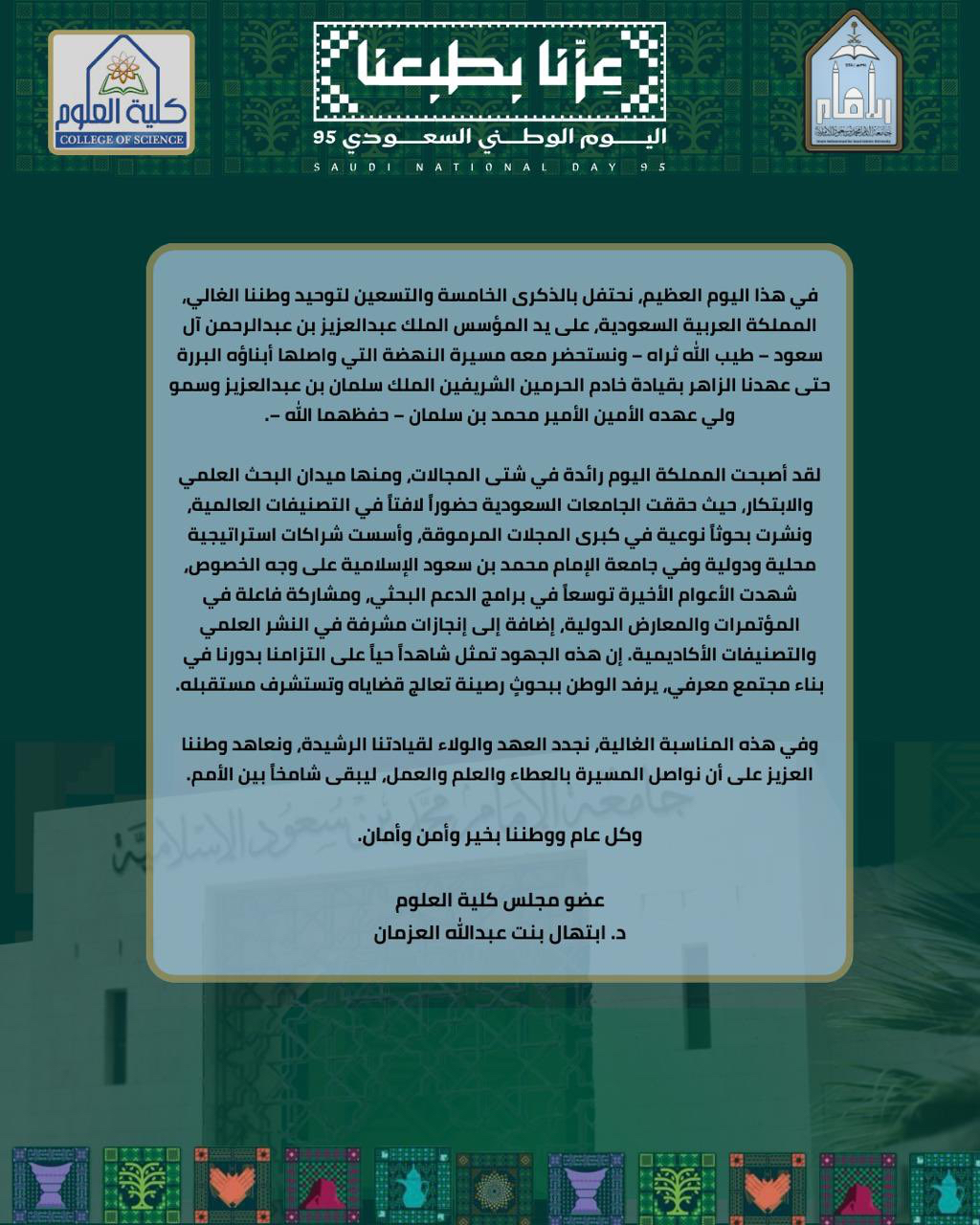 منسوبو كلية العلوم يعبّرون عن مشاعرهم بمناسبة اليوم الوطني الـ95