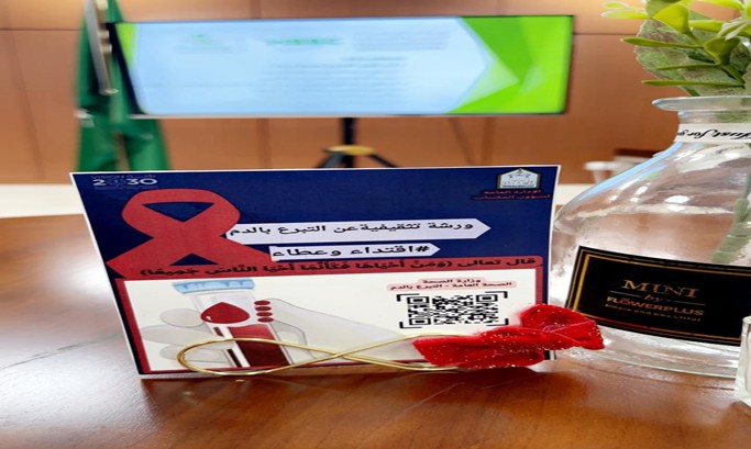 كما تضمنت الورشة عرضًا توعويًا قدمه مختصون من وزارة الصحة، تناول محاور عدة حول شروط التبرع بالدم، وفترات التبرع، وأثره الإيجابي على الصحة العامة.