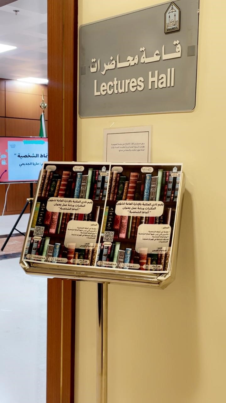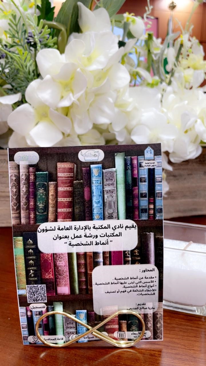 ​​  أقامت الإدارة العامة لشؤون المكتبات ممثلة بنادي المكتبة يوم الأربعاء 7 مايو ورشة عمل بعنوان (أنماط الشخصية)، استهدفت تعزيز فهم المشاركين لأسس تكوين الشخصية وآليات التعرف على الأنماط المختلفة. تناولت الورشة الجوانب النظرية المعتمدة في تحليل الشخصية، بما في ذلك العوامل البيئية والوراثية المؤثرة في بنائها،