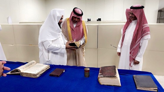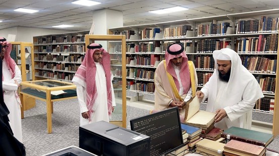 وقد شملت الزيارة كذلك قاعة الكتب النادرة ومعرض المخطوطات، حيث أبدى سعادته اهتماماً بالغاً بالمجموعة الفريدة من المخطوطات والكتب النادرة التي تحتفظ بها المكتبة، والتي تمثل إرثاً علمياً وثقافياً ثميناً. كما زار سعادته معمل الترميم، واطلع على آليات العمل الدقيقة التي تُعنى بصيانة وحفظ المخطوطات، بما يضمن استدامتها وإتاحتها للأجيال القادمة.