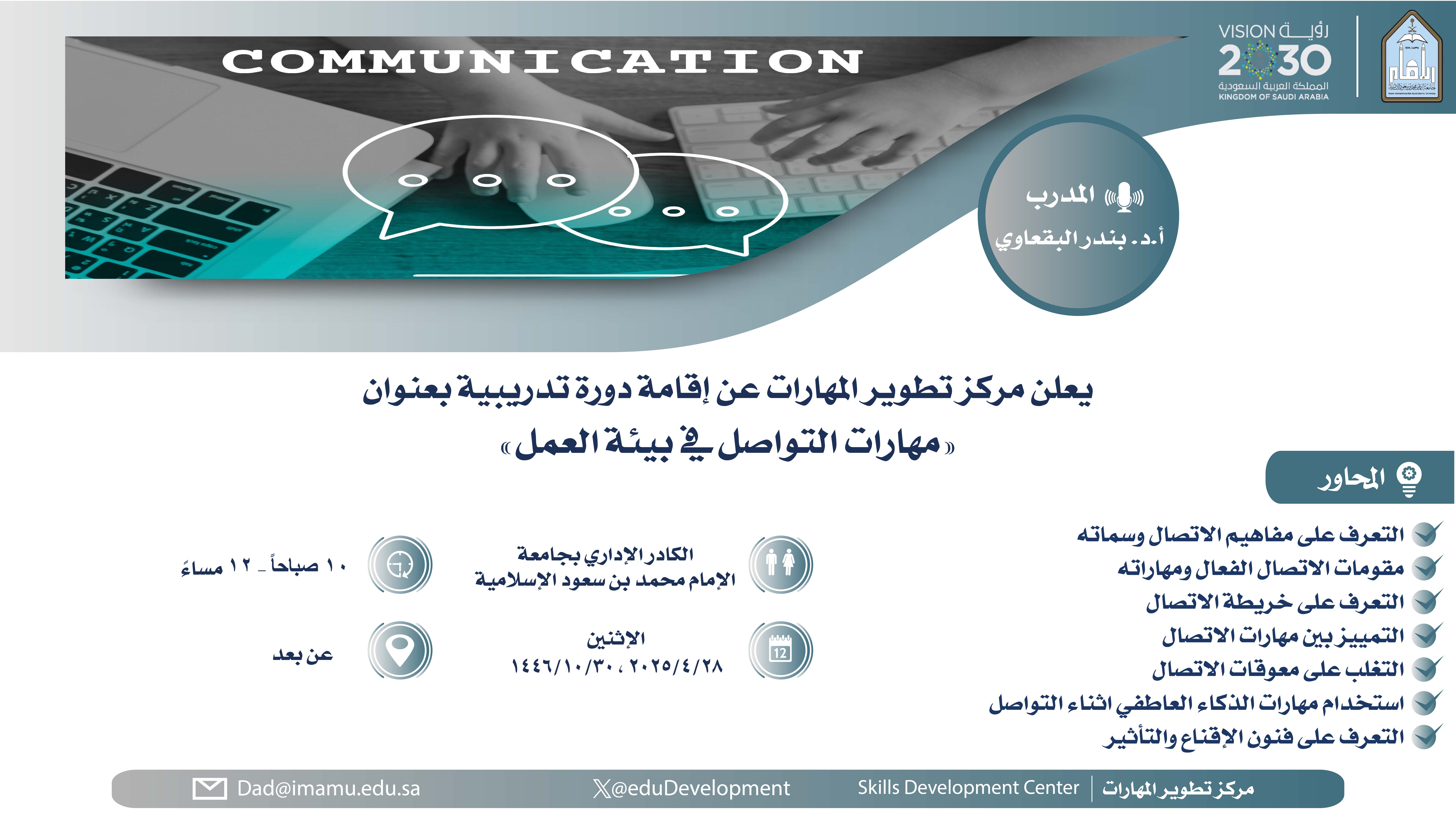 والموجهة إلى الكادر الإداري بجامعة الإمام محمد بن سعود الإسلامية