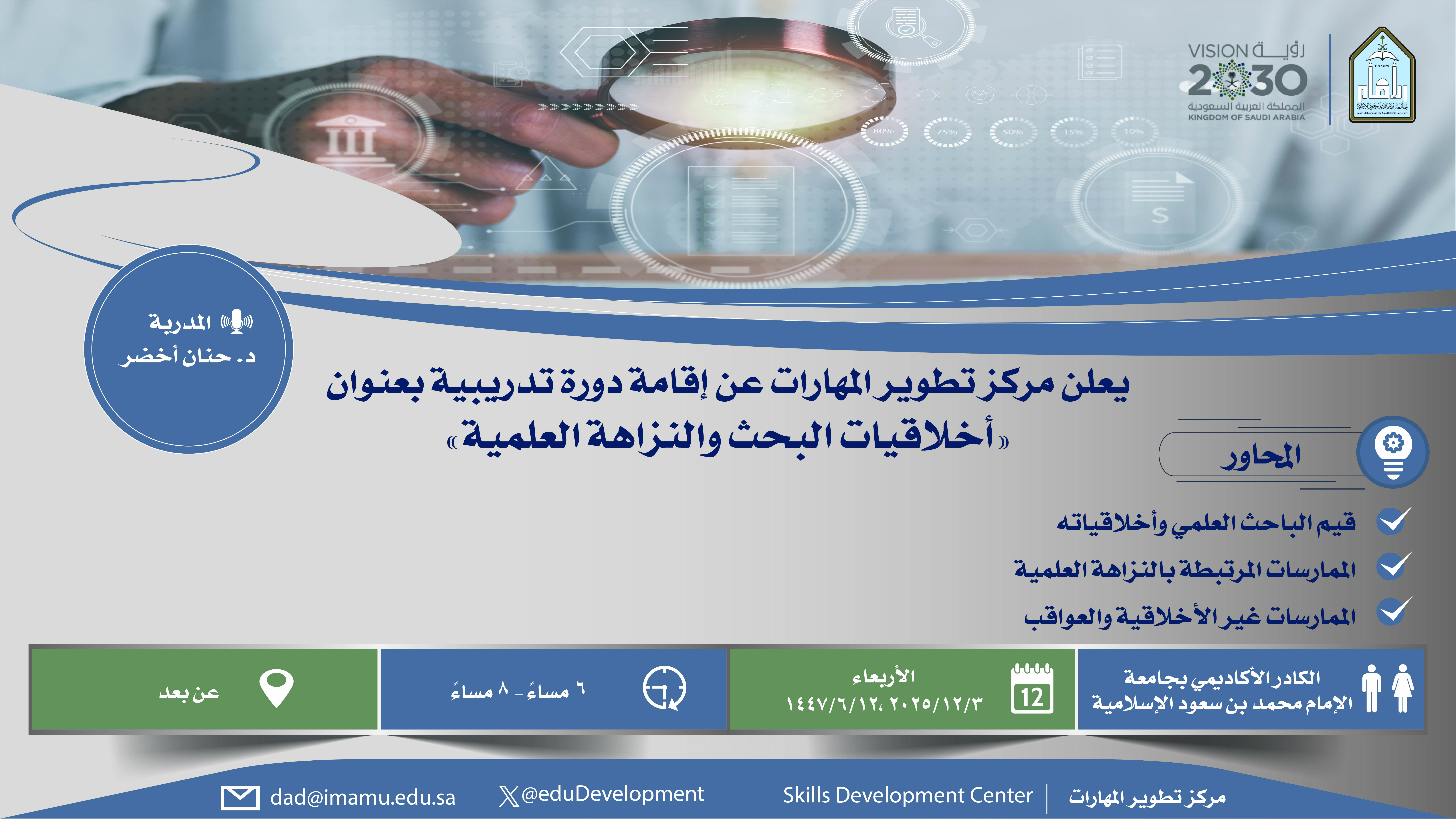 يسُر مركز تطوير المهارات الإعلان عن بدء التسجيل في دورة تدريبية بعنوان